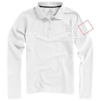 Oakville'i pikkade varrukatega naiste polo pakub klassikalist ja läbimõeldud välimust ning on valmistatud 200 g/m² 100% puuvillasest pikee-kudumist, mistõttu on see ideaalne aastaringseks kandmiseks. See polo on kujundatud liibuva kujuga naiseliku väljanägemise jaoks ja pistetud detailid annavad rafineeritud puudutuse. Satiinist kaelateip teeb polo vastupidavaks, satiiniga küljelõhed lisavad liikuvust ning soojusülekande põhisilt tagab sildivaba mugavuse.