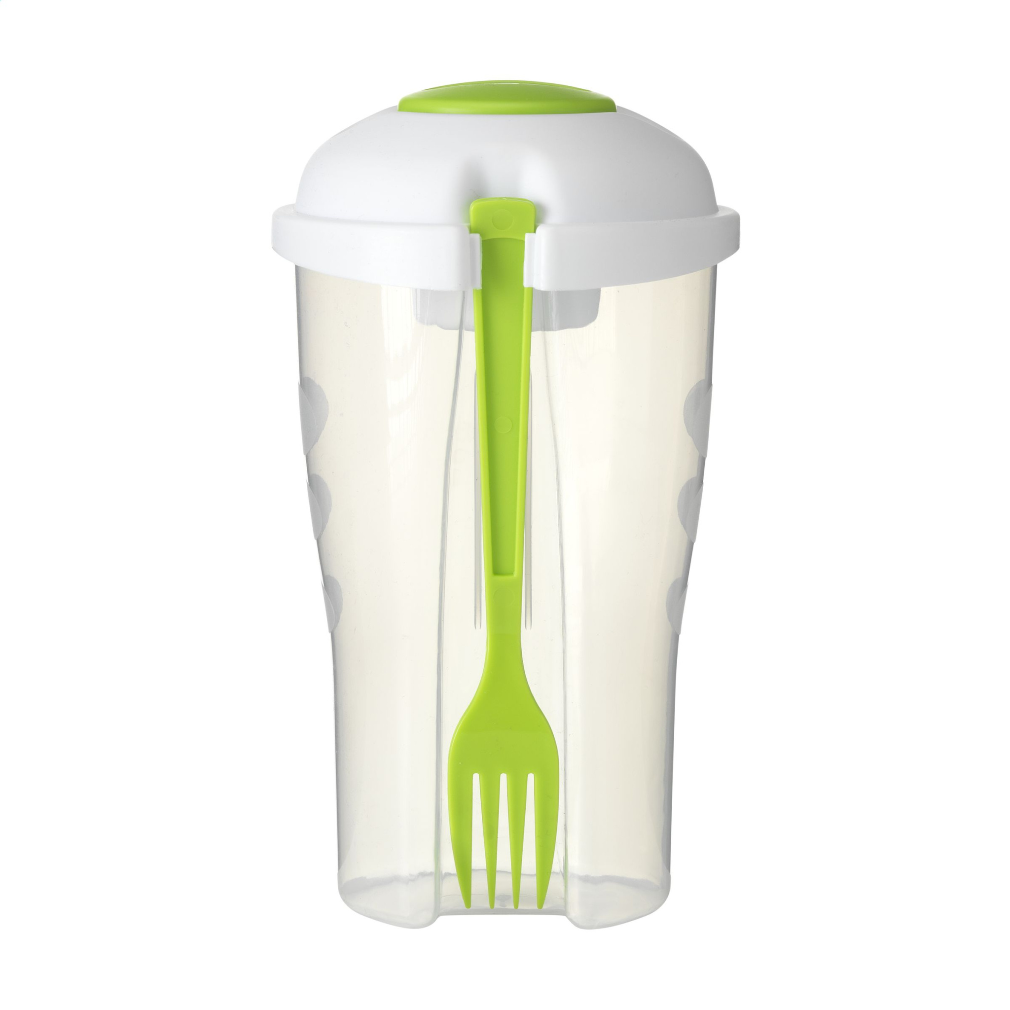 Tugevast plastikust salatišeiker. Eemaldatava kaanega, kandiku kastme ja kahvliga. Sobib ka köögiviljasalatitesse ja pastasalatitesse. Mahutavus 900 ml.