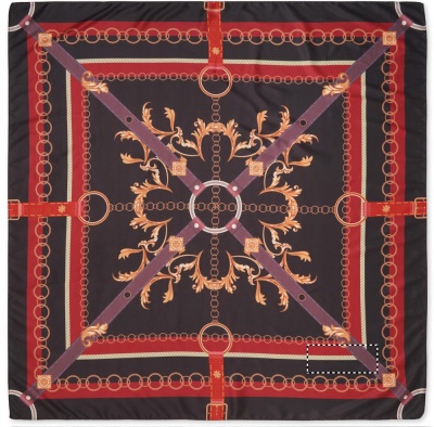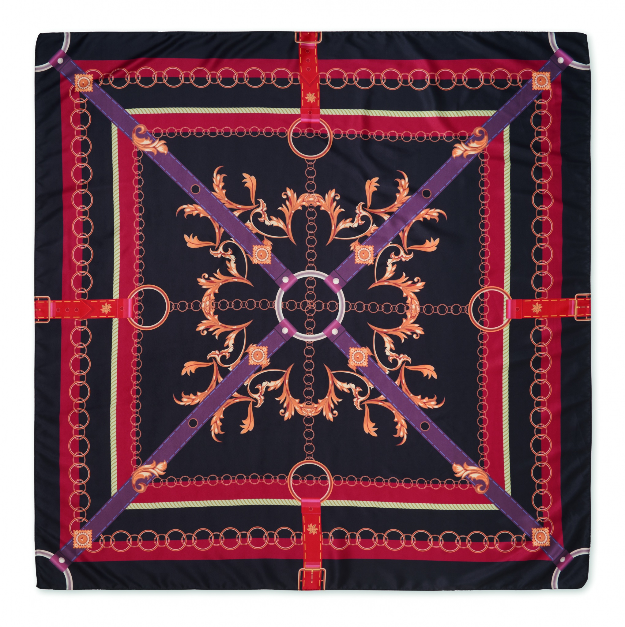 Taaskasutatud satiinpolüestrist rätik mustriga.