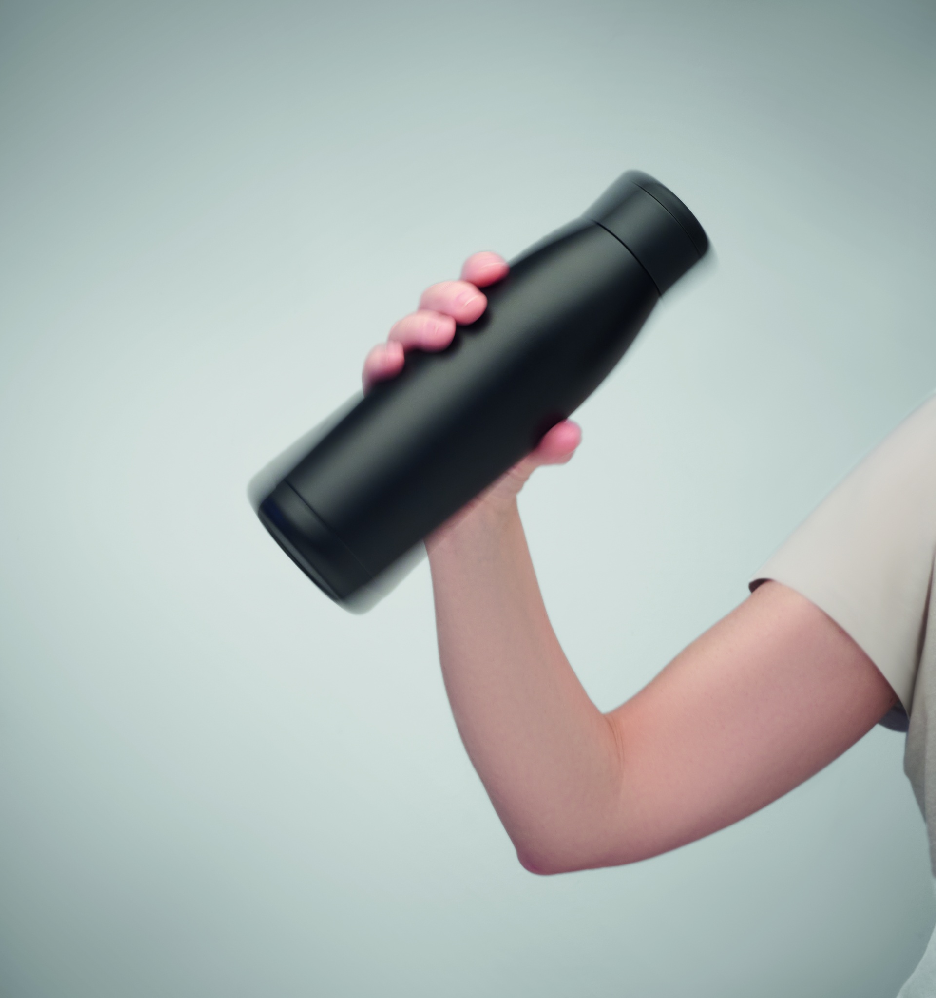 Kahekordse seinaga taaskasutatud roostevabast terasest (90% taaskasutatud roostevabast terasest ja 10% roostevabast terasest) pudel pehme silikoonist kanderõnga kaanega. Pudeli lihtsalt loksutades muutub temperatuur soojenduseks või jahutamiseks, oleneb sees olevast vedelikust. Lekkevaba. Mahutavus: 400 ml.