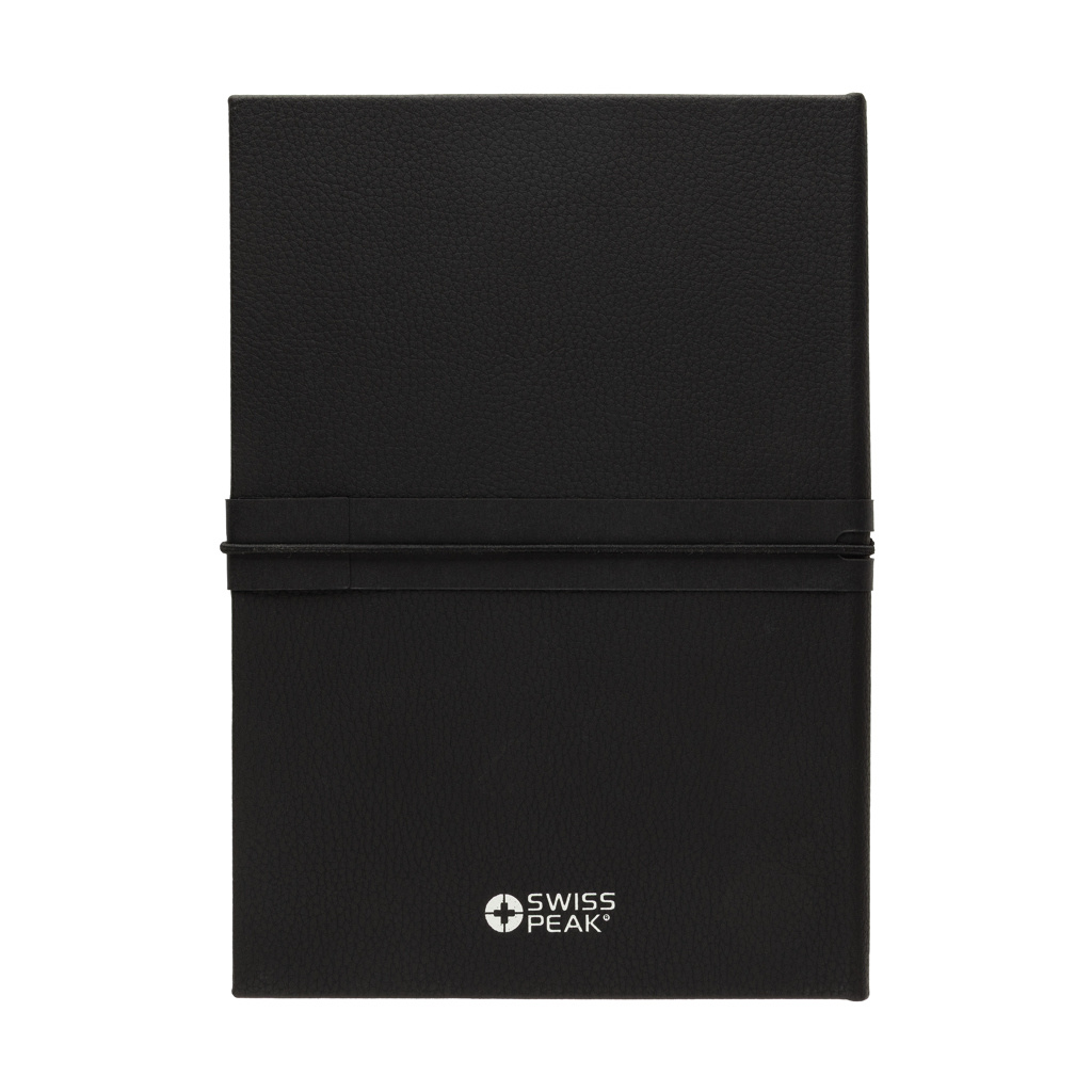 See luksuslik kinkekomplekt sisaldab 480 ml topeltseinaga veepudelit, mis on valmistatud taaskasutatud roostevabast terasest. Komplekti kuulub veel läikiva metallikviimistlusega ja PU-nahast rihmaga esmaklassiline Swiss Peak võtmehoidja, elegantne äriklassi pastapliiats 1000-meetrise kirjutusmahuga ja pehme kattega märkmik, mis on valmistatud taaskasutatud polüestrist (PU). Seest leiate 160 kreemikat lehte, mis on valmistatud taaskasutatud paberist. Kõik tooted on RCS-sertifikaadiga, mis tagab taaskasutatud materjalide täielikult kontrollitud tarneahela.