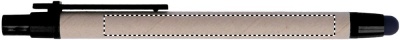 Taaskasutatud kartongist silindri ja ABS-otsa ning klambriga valmistatud kuulpliiats. Sinine tint, täidis ja pehme puutetundlik ots.