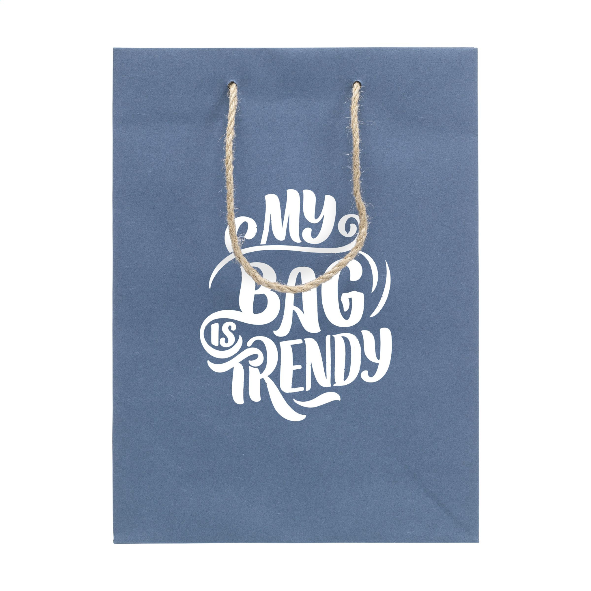 Vau! Tugev ökokinkekott (suurus M), mis on valmistatud taaskasutatud teksakiududega paberist (180 g/m²). Taaskasutatud teksakangaste kasutamise tõttu võib sinise toon kotiti erineda. Sinine värv annab kotile trendika välimuse. Kotil on kaks lühikest džuudist kandeaasa, volditud põhi ja küljevolt. Sobib igasugusteks reklaamieesmärkideks. Selle koti tootmiseks puid maha ei võeta.