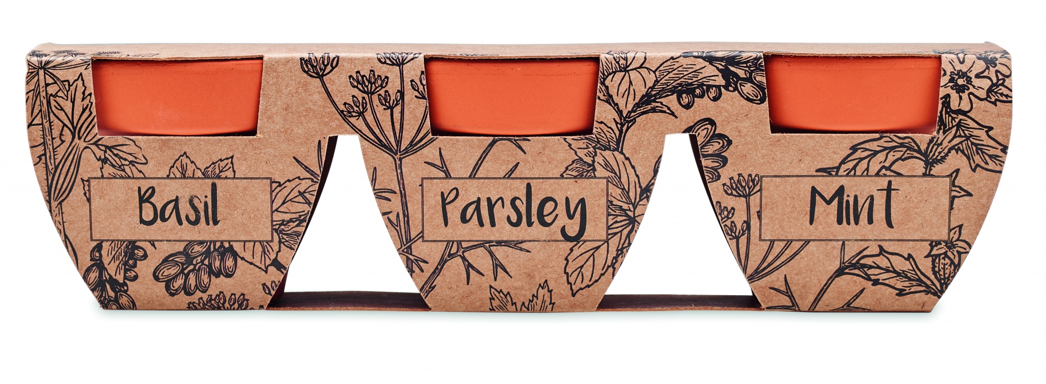 Logo trade firmakingituse pilt: Terrakota 3 ürdipoti komplekt