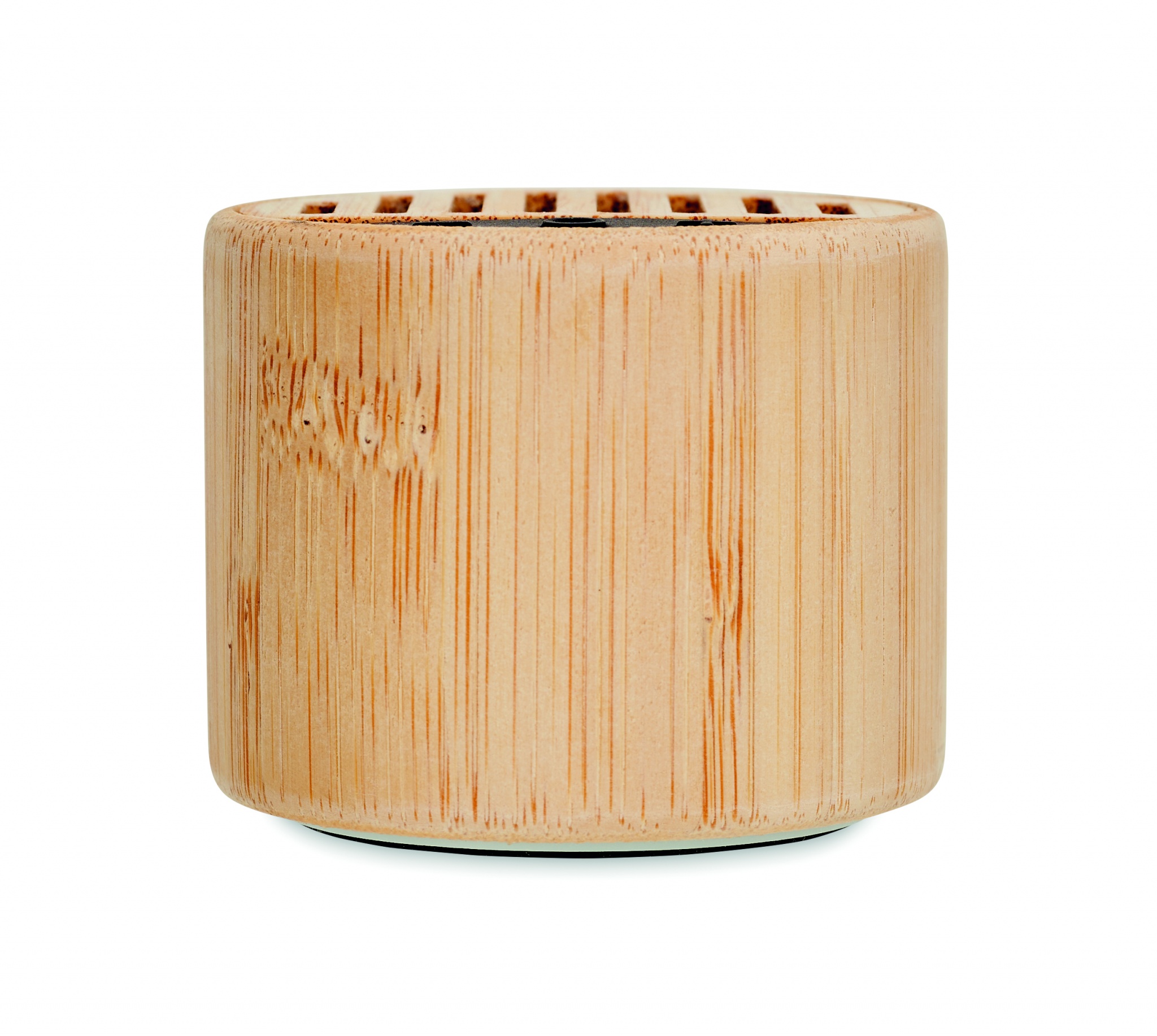 Logotrade ärikingituse foto: Ümmargune bambusest juhtmevaba kõlar