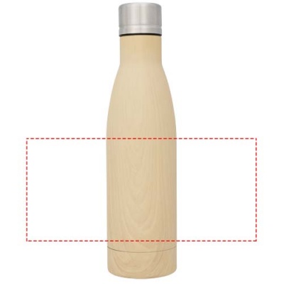 Vasa vaskvaakumisolatsiooniga pudeli abil hoidke oma jooke kuumana 12 tundi või külmana 48 tundi. Kahekordse seinaga ja roostevabast terasest valmistatud vaakum-isolatsiooni ja vasega kaetud siseseinaga, mis tähendab, et teie jook hoitakse vastavalt teie vajadustele kuuma või jääkülma. Pudel on naturaalse puidu välimusega. BPA-vaba ning testitud ja heaks kiidetud Saksamaa toiduohutuse seadusandluse (LFGB) alusel ning ftalaatide sisalduse jaoks REACH-määruse alusel. Maht: 500 ml. Tarnitakse kinkekarbis.