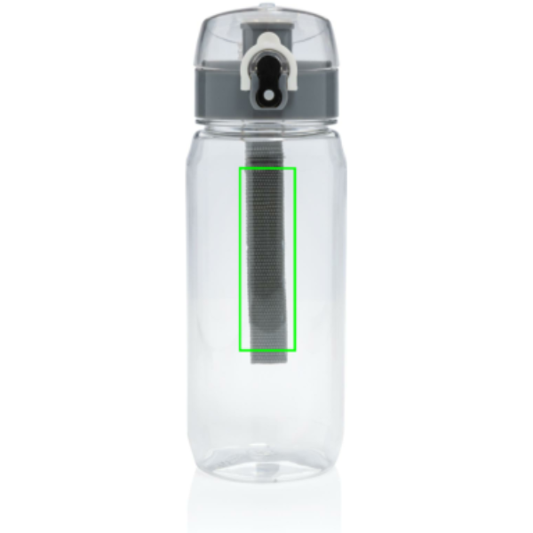 See RCS RPET veepudel on lekkekindel ja sellel on lukustatav ja ühe käega juhitav kaas. Sellel on ka käepide, mis hõlbustab kaasaskandmist. Pudeli korpus on valmistatud 100% RCS sertifikaadiga RPET-st. RCS-sertifikaat tagab taaskasutatud materjalide täielikult sertifitseeritud tarneahela. Ainult käsipesu. See toode on mõeldud ainult külmade jookide jaoks. Taaskasutatud kogusisaldus: 73% eseme kogukaalust. BPA vaba. Mahutavus 600ml. Kaasa arvatud FSC®-sertifikaadiga kraft-kinkepakend.