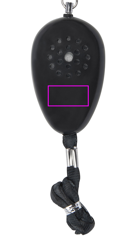 Taskuhälytin voidaan aktivoida yksinkertaisesti vetämällä avaimenperän tappi ulos. Kahden mukana tulevan turvakoukun ansiosta se voidaan kiinnittää melkein mihin tahansa. Sisältää mustan kiristysnyörin ja kolme LR45-nappiparistoa. Painamme logosi yhdelle puolelle.
