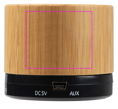 Tyylikäs Bluetooth-kaiutin bambukotelossa, sis. USB-latauskaapeli. Muut ominaisuudet: Micro SD -korttipaikka MP3-tiedostojen toistamiseen, AUX-liitäntä. Akun kesto n. 40-70 minuuttia. Laserimme logosi koteloon.