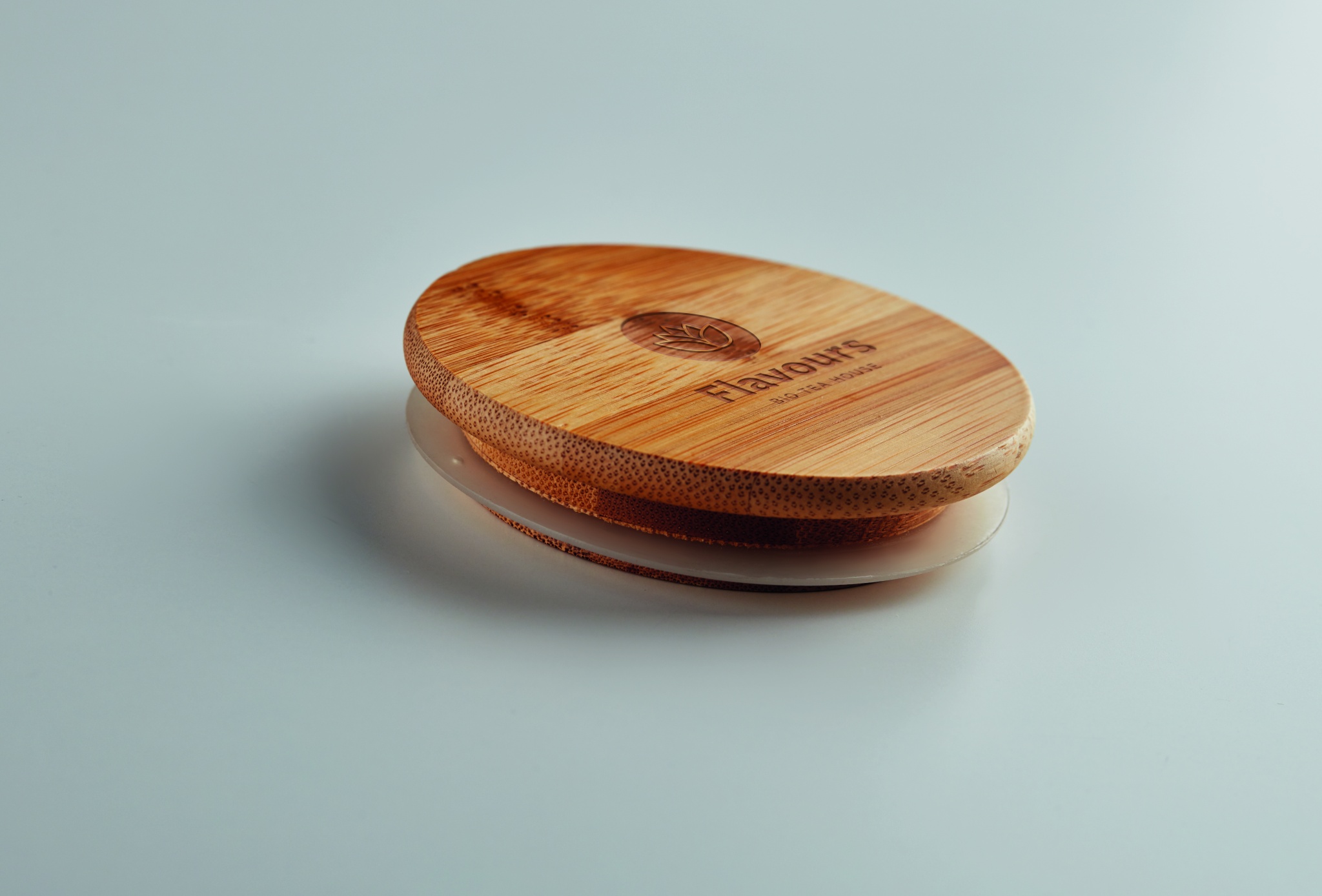 Kaksiseinäinen 450 ml borosilikaattilasi bambukannella, kannessa silikonirengas. Luonnollisen materiaalin (bambu) vuoksi, tuotteiden värissä/ koossa saattaa olla erinäisyyksiä ja tämä voi vaikuttaa painatuksen lopputulokseen.