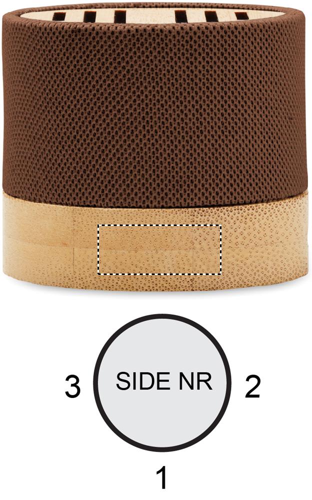 Langaton 5.0-kaiutin jonka ulkokuori on RPET materiaalia ja bambua, LED valoilla. Mukana yksi ladattava Li-ION 300 mAh akku. Sisältää SD- korttiportin ja AUX/USB-kaapelin. Hands free -puhelutoiminto. Lähtötiedot: 3W, 3 Ohm ja 5V. Soittoaika n. 3h.