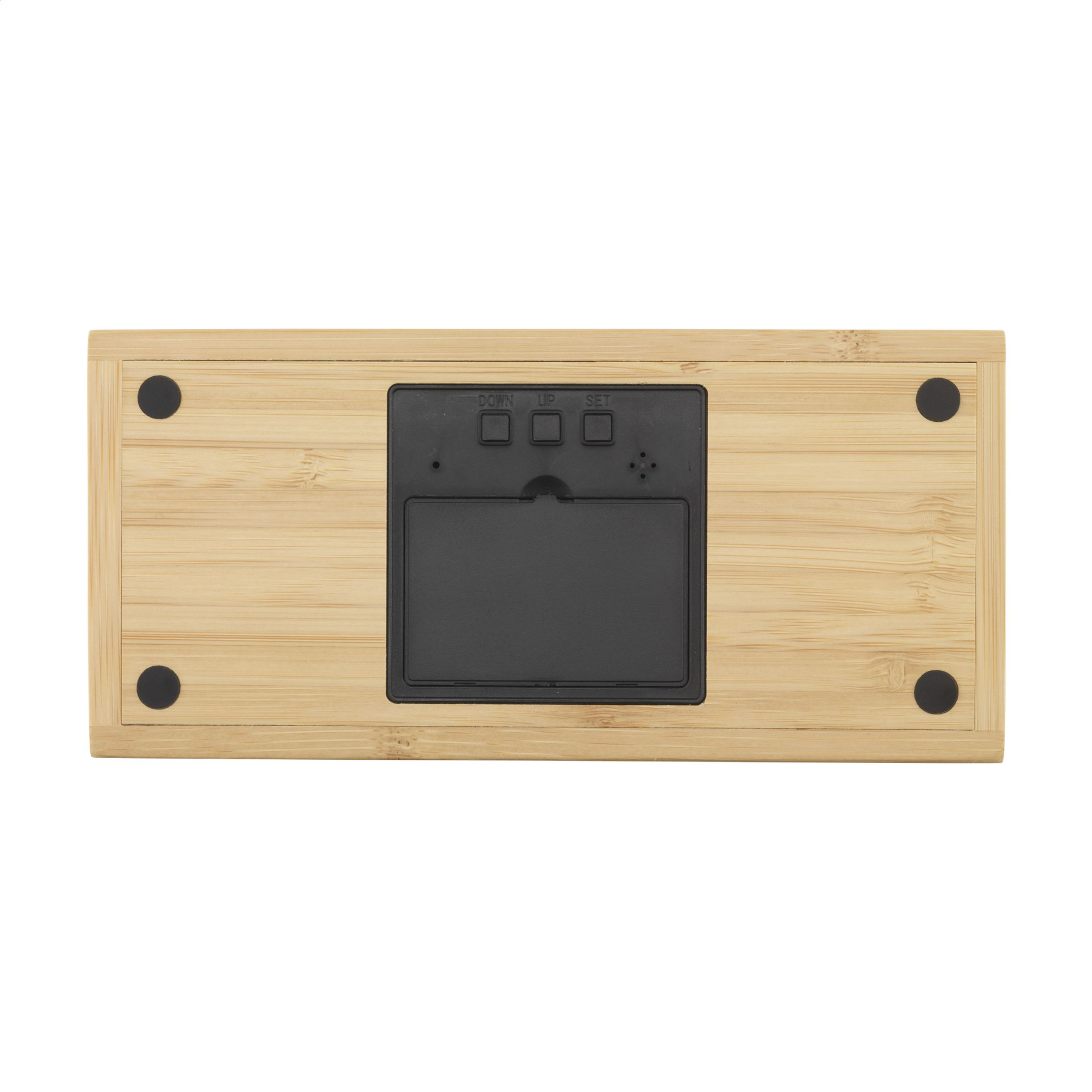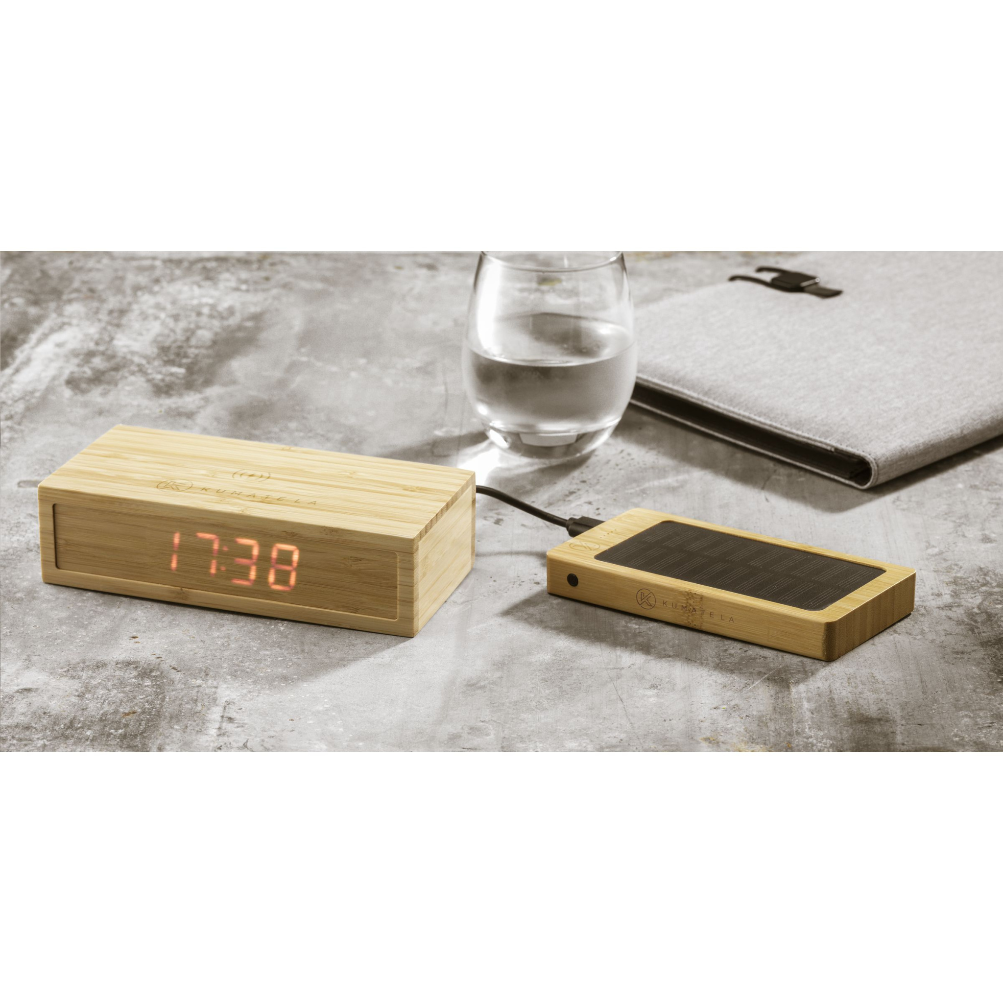 Logo trade mainostuotet tuotekuva: Bambuinen herätyskello langattomalla laturilla