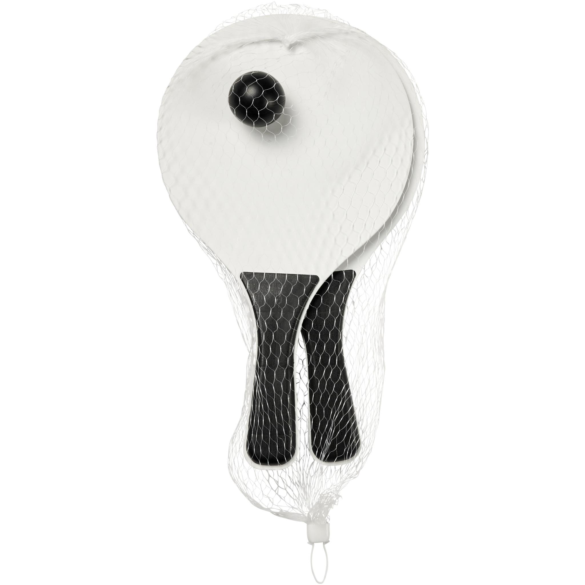 Rantapelisetti hauskanpitoon. Useita värivaihtoehtoja. Kestävä rantapelisetti on valmistettu MDF-puusta, kahva on värillistä PP-muovia. Mukana samanvärinen pehmeä pallo verkkopussissa, joka helpottaa kuljetusta rannalle hauskanpitoa varten.