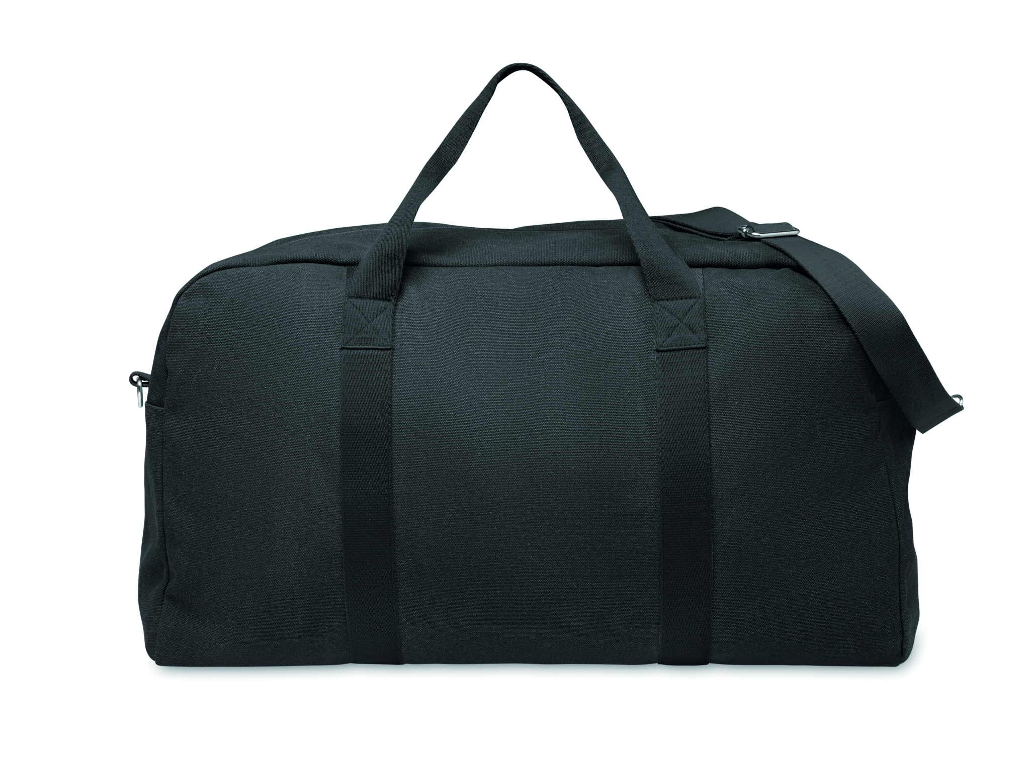 Duffelimatkalaukku kierrätysmateriaalista 450 gr/m² (60 % kierrätettyä puuvillaa ja 40 % kierrätettyä polyesteriä),laukussa on säädettävä ja irrotettava puuvillahihna.
