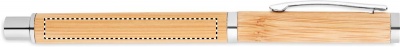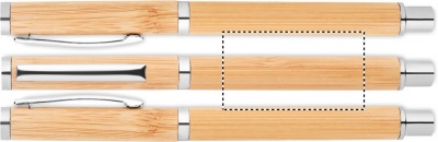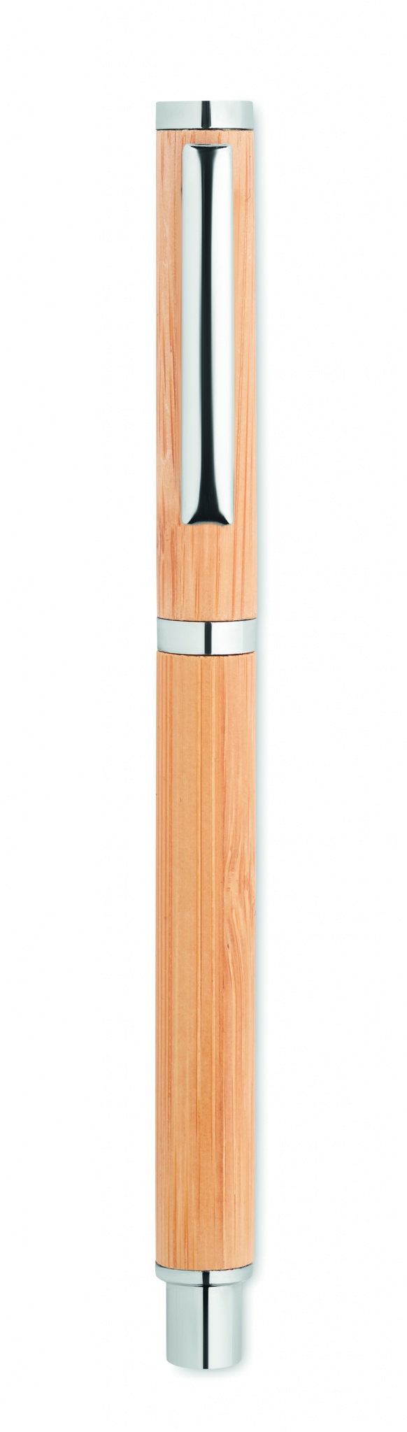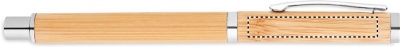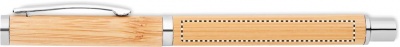 Bambuinen geelikynä sinisellä geelimusteella ja ruostumattomasta teräksestä valmistetuilla yksityiskohdilla.