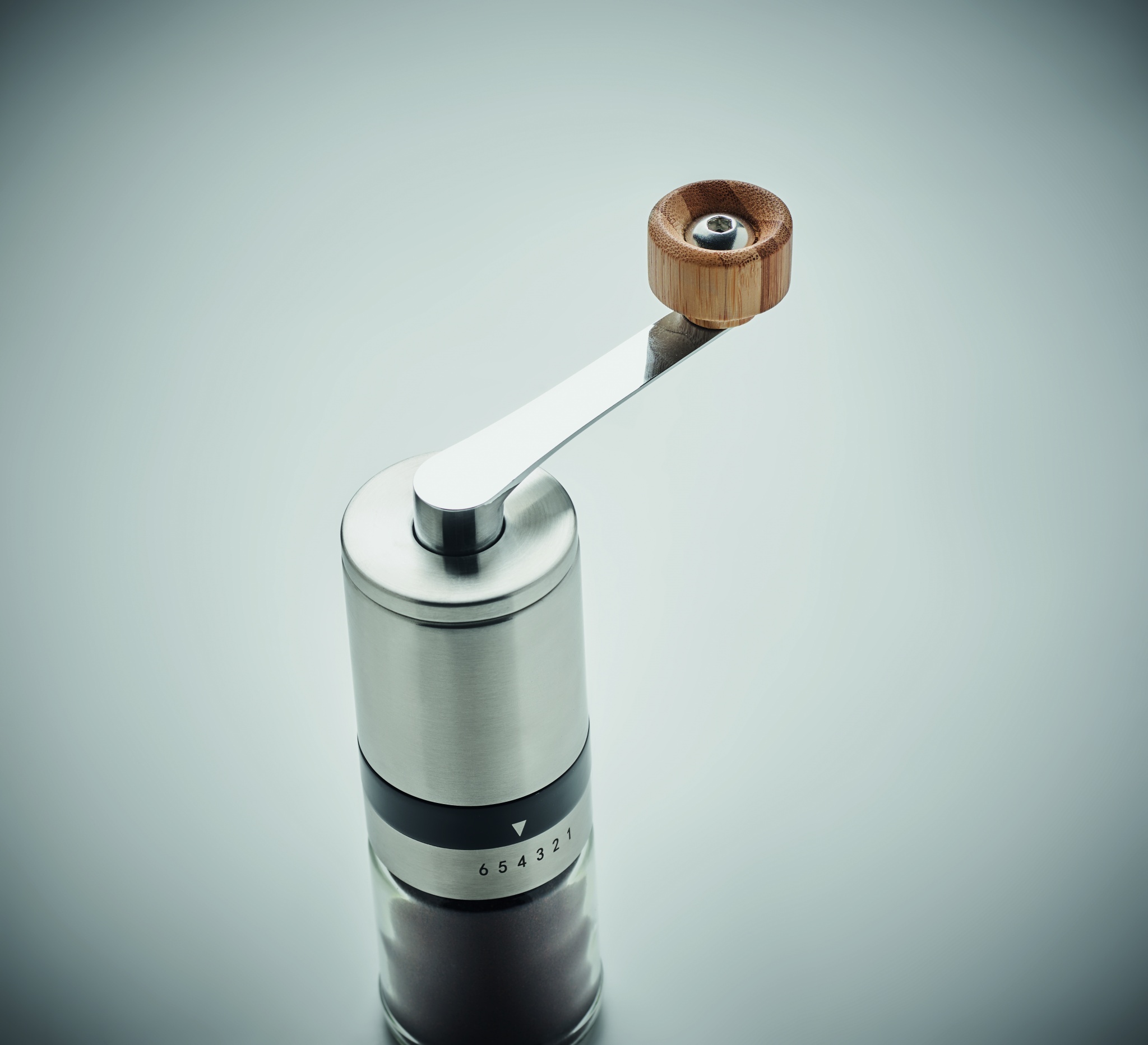 Kahvisetti, sisältää lasisen ruostumattomasta teräksestä valmistetun 350 ml kahvinkeittimen ja manuaalisen keraamisen 100 ml kahvimyllyn.