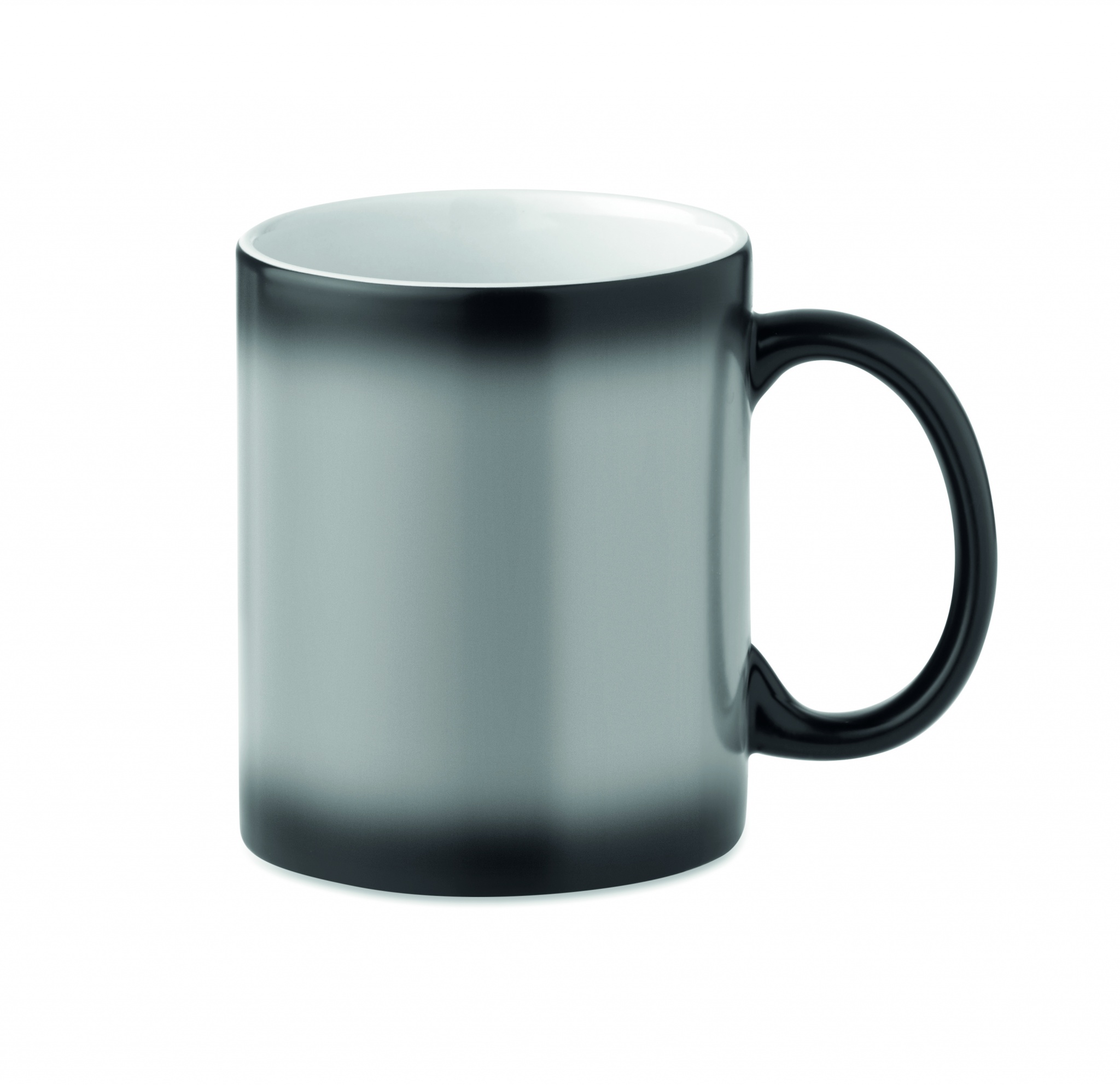 Keraaminen muki 300 ml, erikoispinnoite sublimaatiota varten. Muki muuttaa väriä ja tuo esiin painatuksen, kaadettaessa mukiin (vähintään) 50 ° C lämpöistä nestettä. Yksittäispakattuna valkoiseen pahvilaatikkoon.