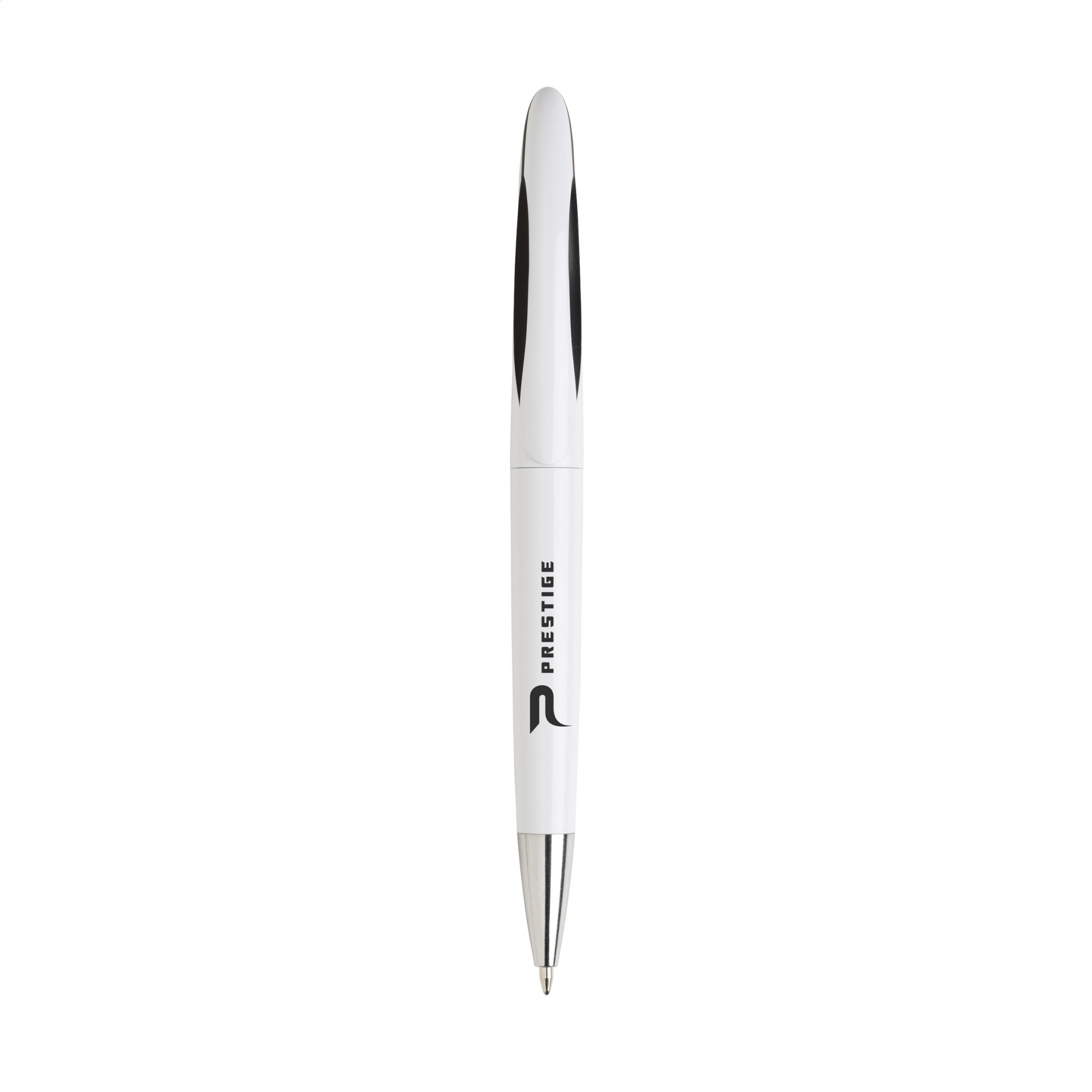 Sinisellä musteella varustettu kuulakärkikynä, jossa on tyylikäs klipsi, jossa on silmiinpistävä värikorostus ja kierremekanismi.