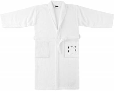 350gr/m² orgaanisesta puuvillasta valmistettu kylpypyyhe, etutaskuilla. Koko XL/XXL, sisältää orgaanisen puuvilla säilytyspussin.