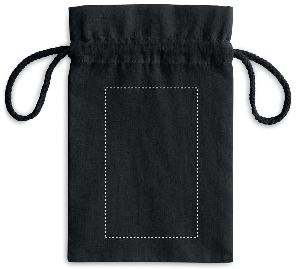 105 g/m² pieni puuvilla lahjapussi narukiristyksellä, 14 x 22 cm. Valmistettu sertifioidun standardin mukaisesti haitallisten aineiden käytölle tekstiileissä.
