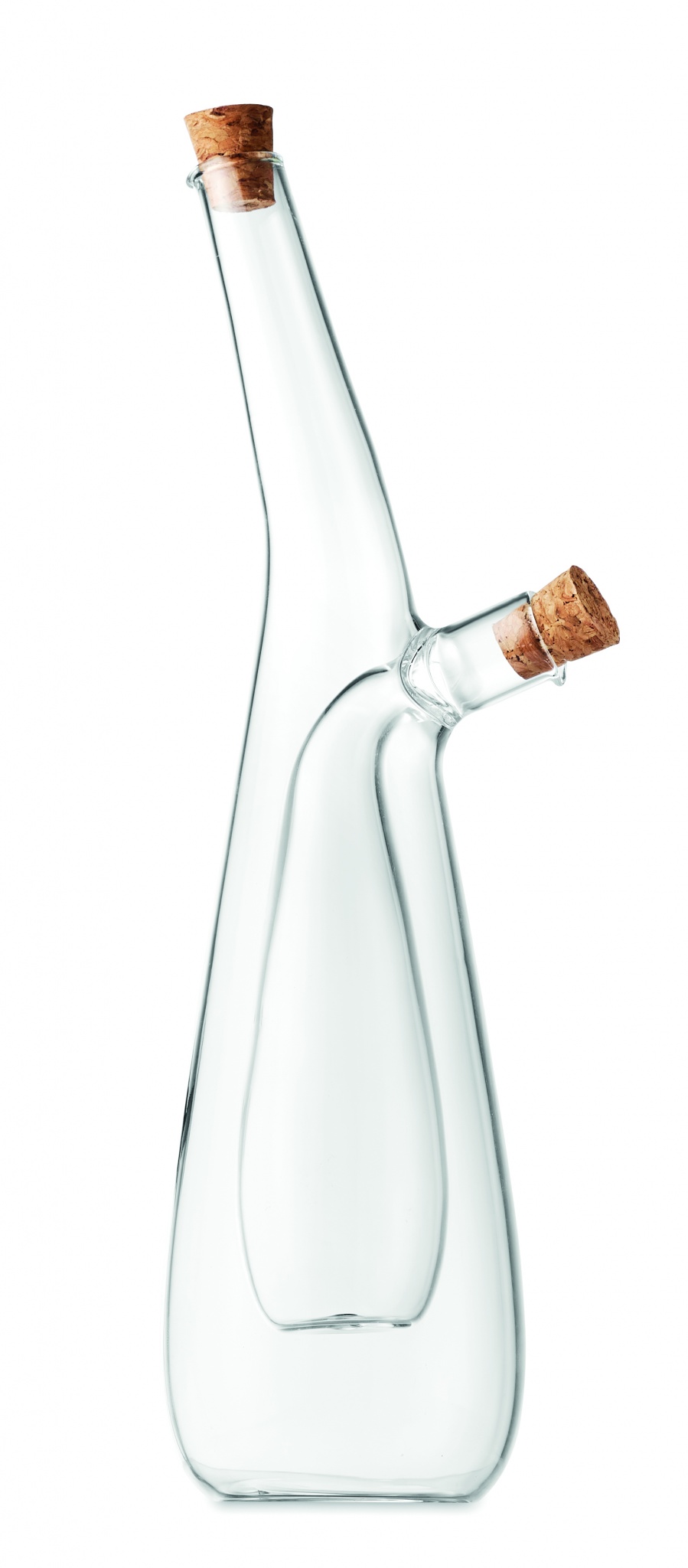 Borosilikaattilasista valmistettu öljy-/ etikkapullo, korkista valmistetulla korkeilla. Ulkoisen pullon tilavuus 300ml ja sisäisen- tilavuus 80 ml. Borosilikaattilasiin ei voi kaiverruttaa.