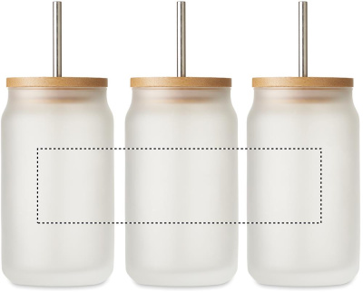 Lasipurkki, jossa on erityinen pinnoite sublimaatiopainatusta varten, bambukansi. Ruostumattomasta teräksestä valmistettu pilli. Tilavuus 400 ml.