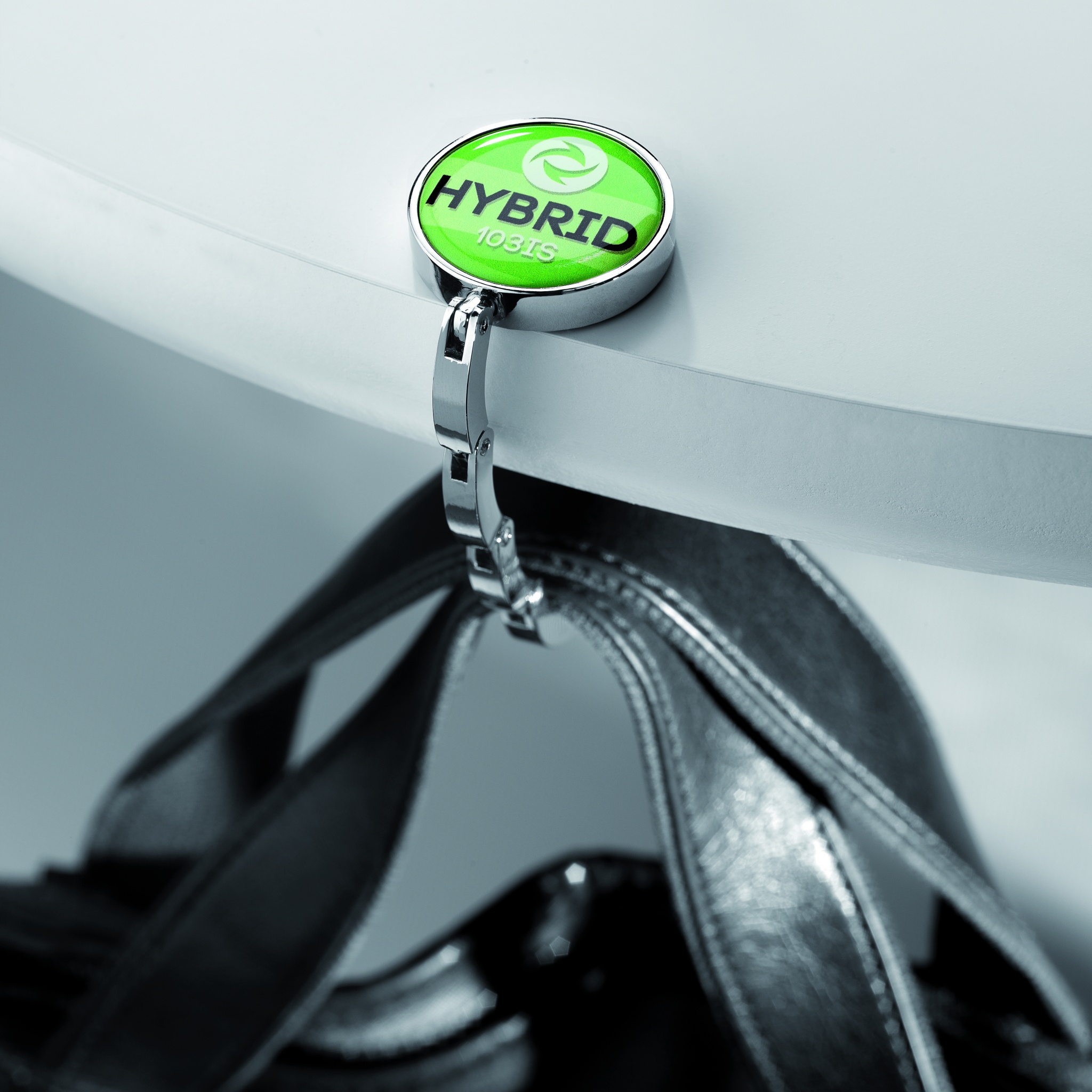 Elegantti laukun pidike esimerkiksi työpöydälle, tuotteessa säädettävä koukku.