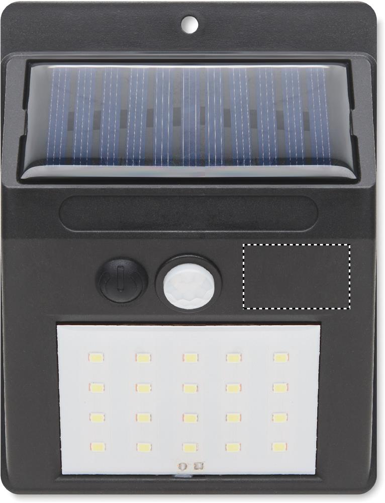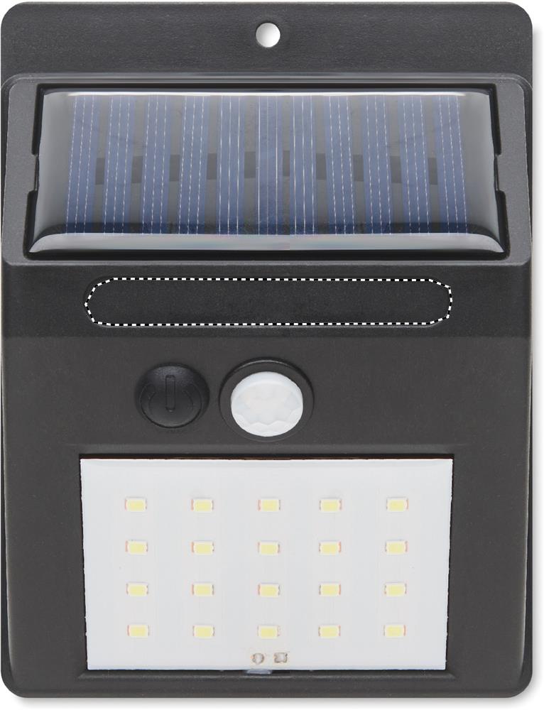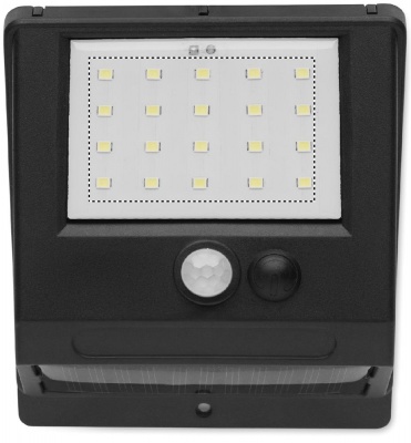 20 LED-aurinkovalaisin PP:stä, jossa on liiketunnistin ja himmenninkytkin. PIR (passiivinen infrapuna-anturi) liiketunnistin. CDS-yöanturi. Suojausluokka: IP 44. Pariston kapasiteetti: 800 mAh.