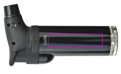 Uudelleentäytettävä "creme brulee" taskulamppu, jossa säädettävä liekkikoko ja lasten turvallisuus. Painamme logosi varrelle.