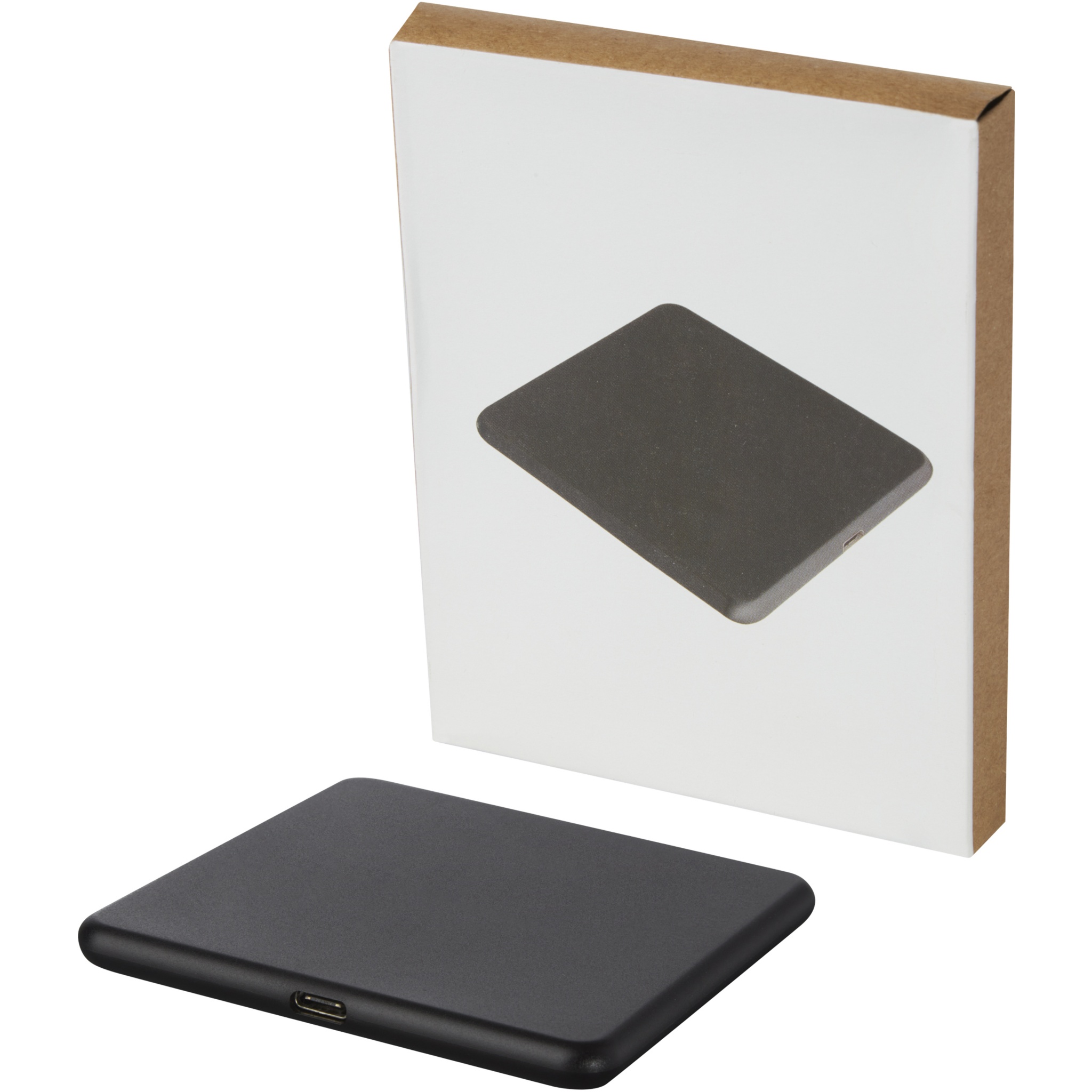 Langaton latausalusta, joka on valmistettu kierrätetystä ABS-muovista. Latausalusta liitetään tietokoneeseen tai kannettavaan tietokoneeseen, ja se lataa sen päälle asetettua laitetta. 10 W:n (maksimi) langaton teho mahdollistaa nopean latauksen. Yhteensopiva kaikkien Qi-laitteiden kanssa (iPhone 8 tai uudempi ja Android-laitteet, jotka tukevat langatonta latausta). Toimitetaan lahjapakkauksessa, joka sisältää käyttöohjeet (molemmat kestävistä materiaaleista).