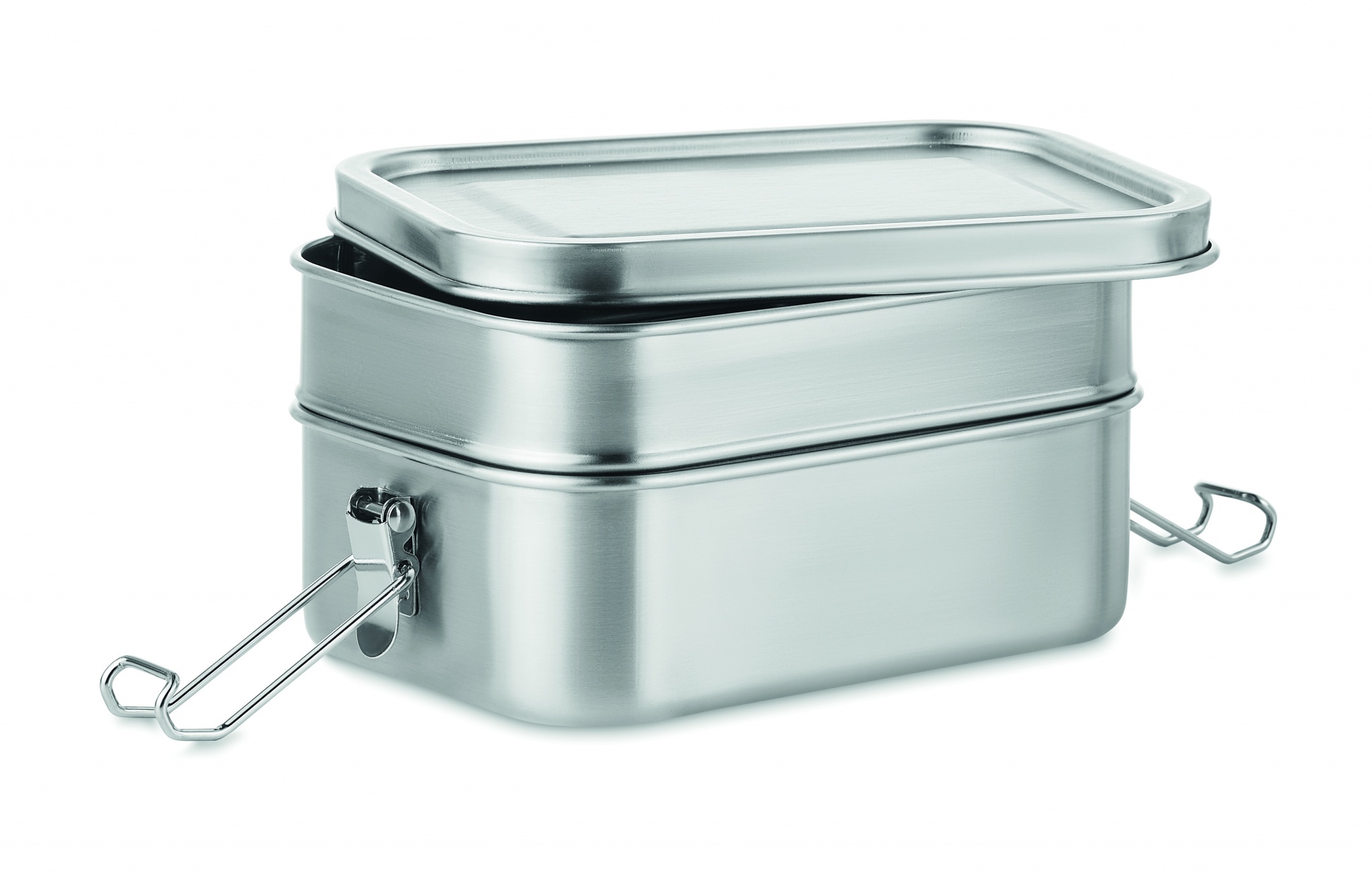 Ruostumattomasta teräksestä valmistetu 1200 ml lounasrasia, 2 lokerolla ja tukevilla sivukahvoilla.
