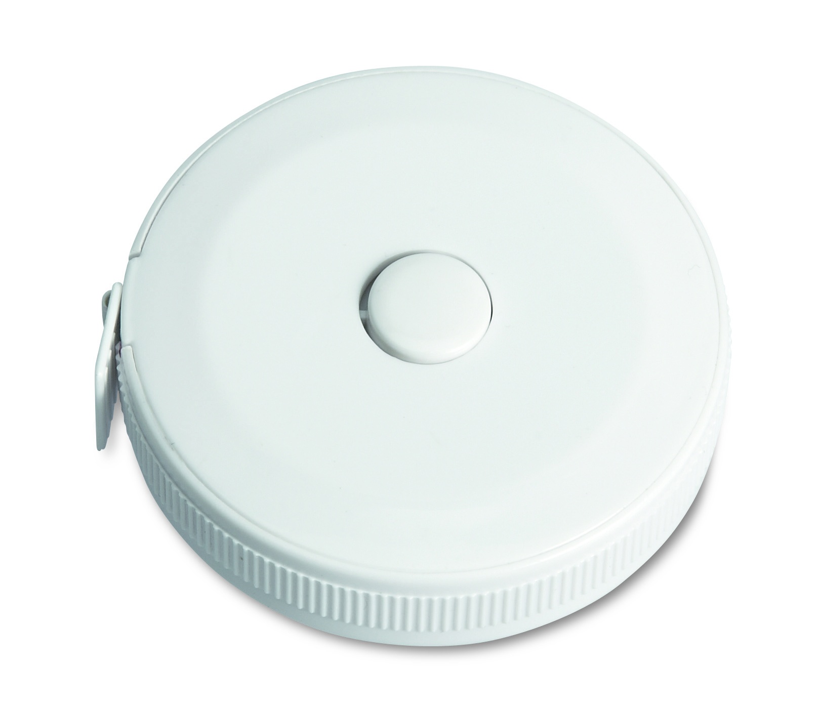 ABS- muovinen 1m mittanauha, pyöreän mallinen. Tuote toimii painamalla nappia, metri ja tuuma mittausyksikkönä.