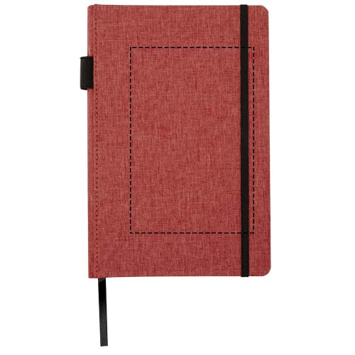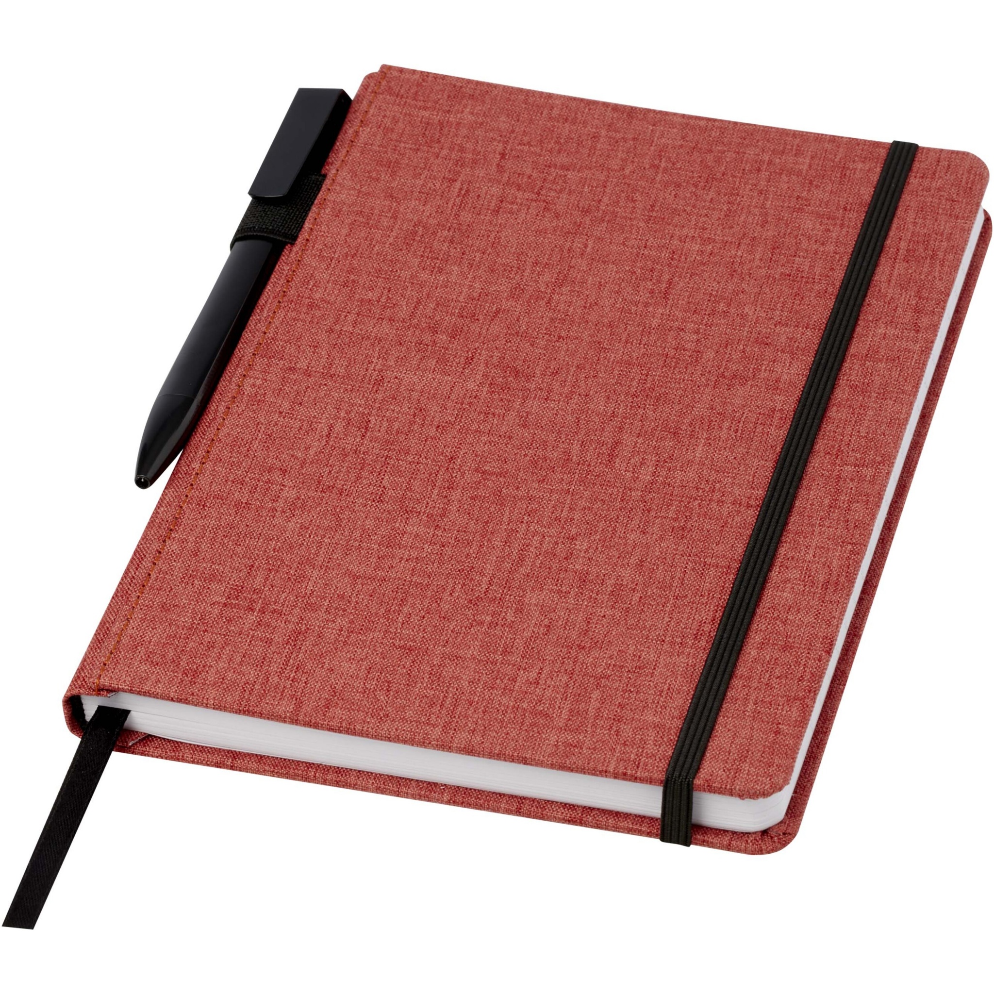 A5-kokoinen muistikirja, jonka kansi on valmistettu RPET-kankaasta. Sisältää 96 arkkia, 70 g/m², kierrätettyä viivapaperia, kynäpidike ja nauhamerkki. Pakattu kartonkisuojukseen.