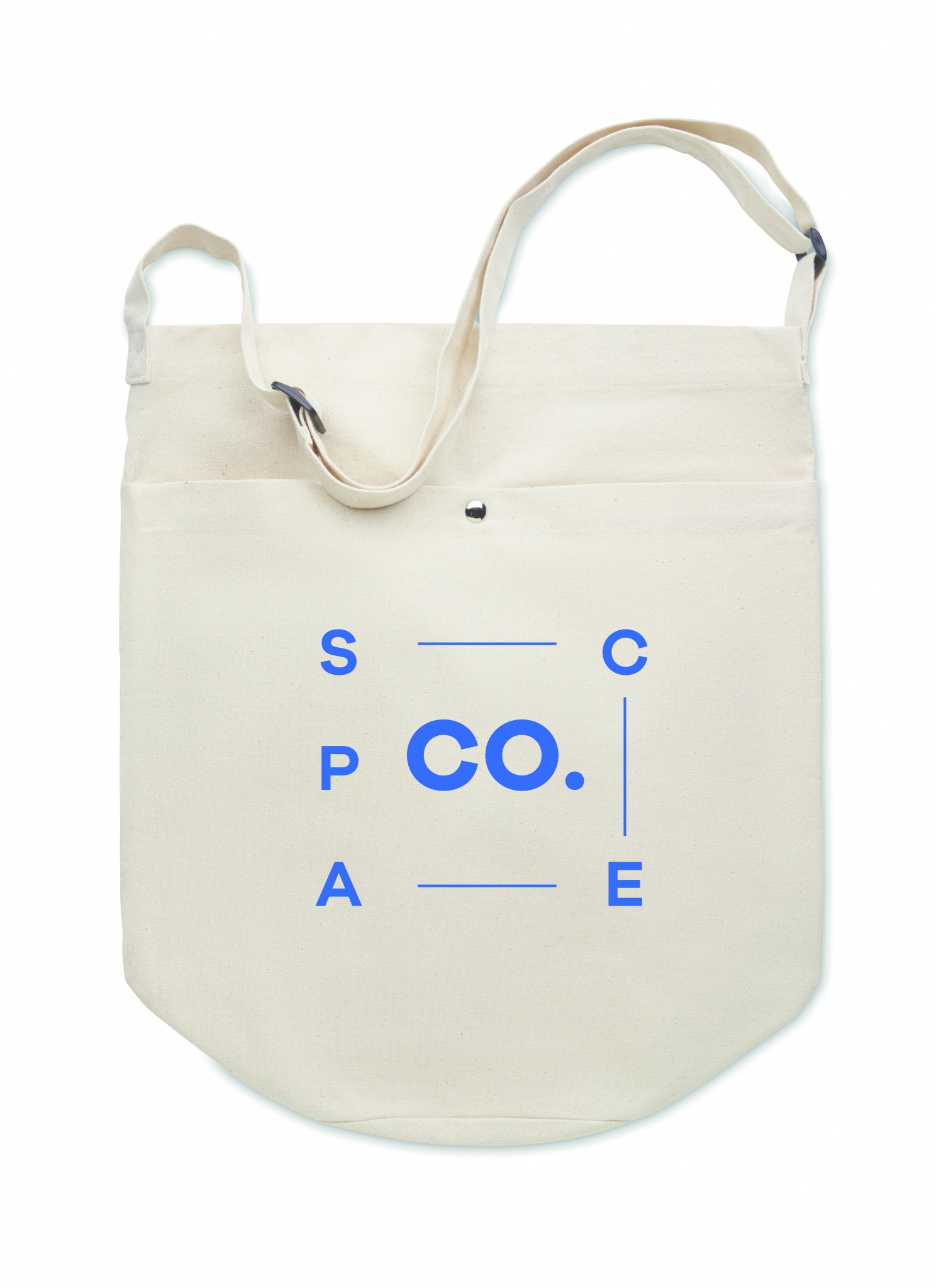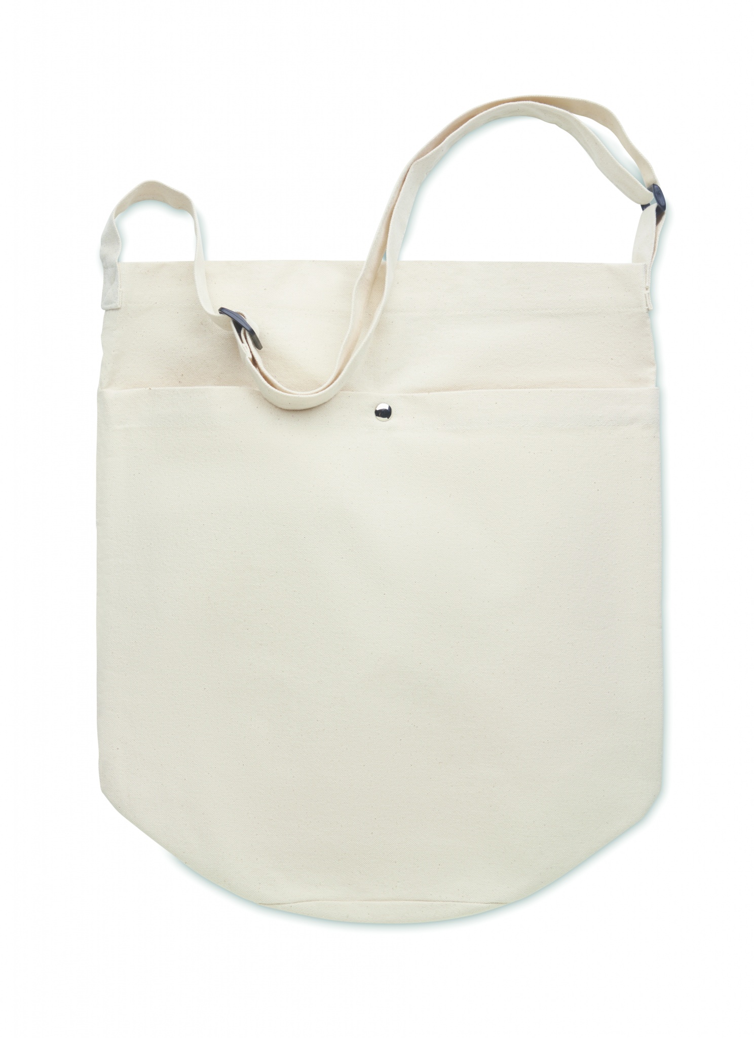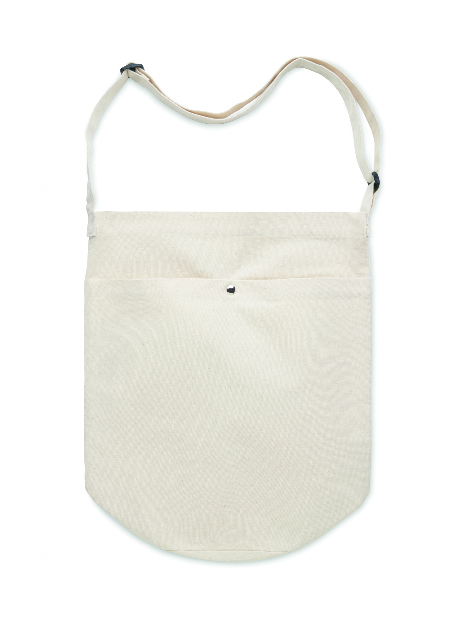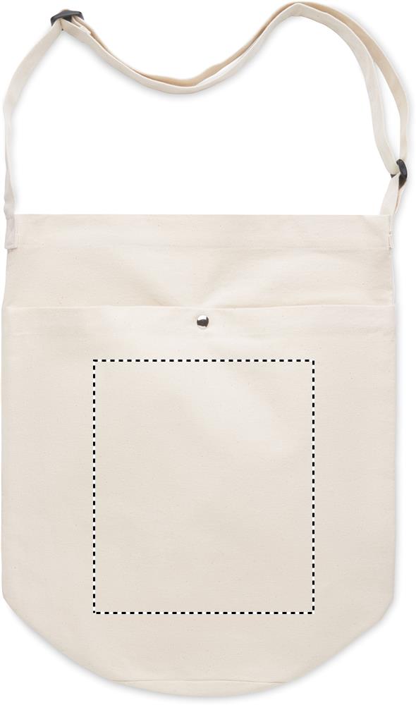Kangaskassi, jossa pitkä säädettävä olkahihna ja suuri etutasku, jossa on nepparikiinnitys. Sisältää sisätaskun. Materiaali 270 gr/m²canvas.