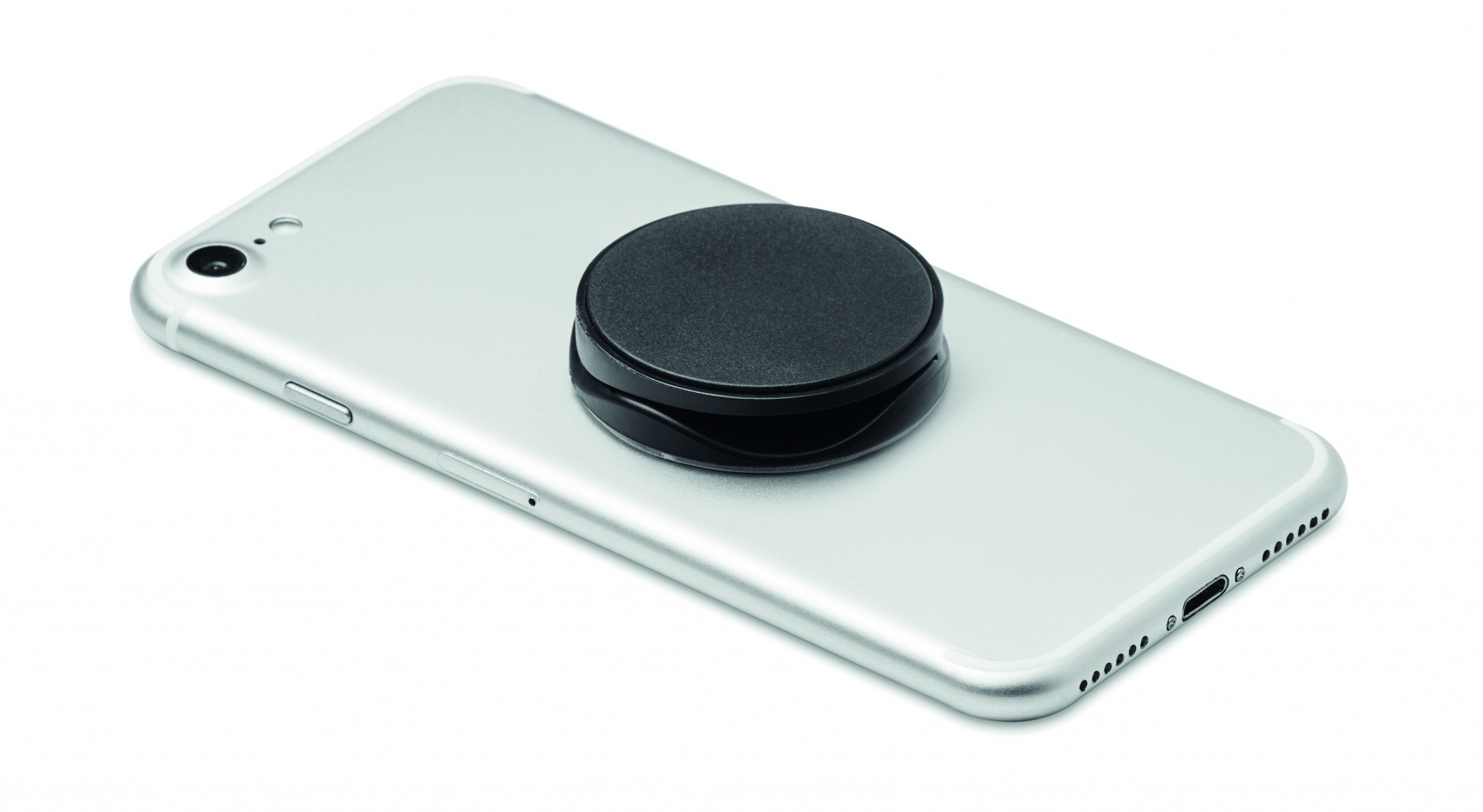 Pyöreän muotoinen kokoontaitettava ABS puhelinpidike/ -alusta, takana 3M tarra tuotteen kiinnitykseen.