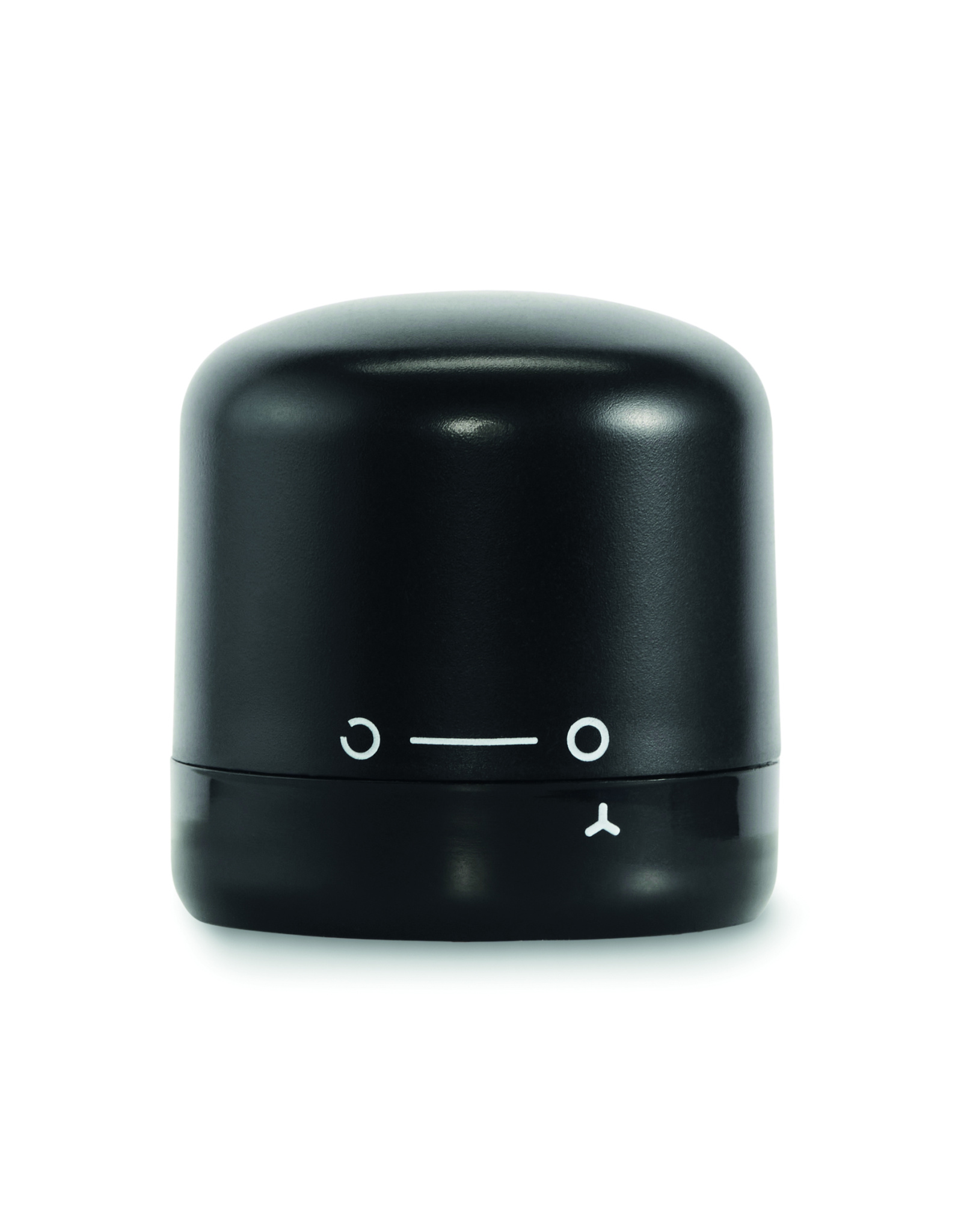 Kierrätetystä ABS-muovista valmistettu pullonkorkki kuohuviinipulloille. Kääntyvällä lukitusmekanismilla ja vuotamattomalla muotoilulla.