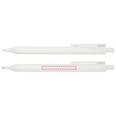 Antibakteerinen kirjoitustarvikesarja, jossa on napsautettava kuulakärkikynä, lyijytäytekynä ja pyyhekumi. Nanojauhepinnoitus vähentää mikro-organismien kasvua kynien pinnalla.