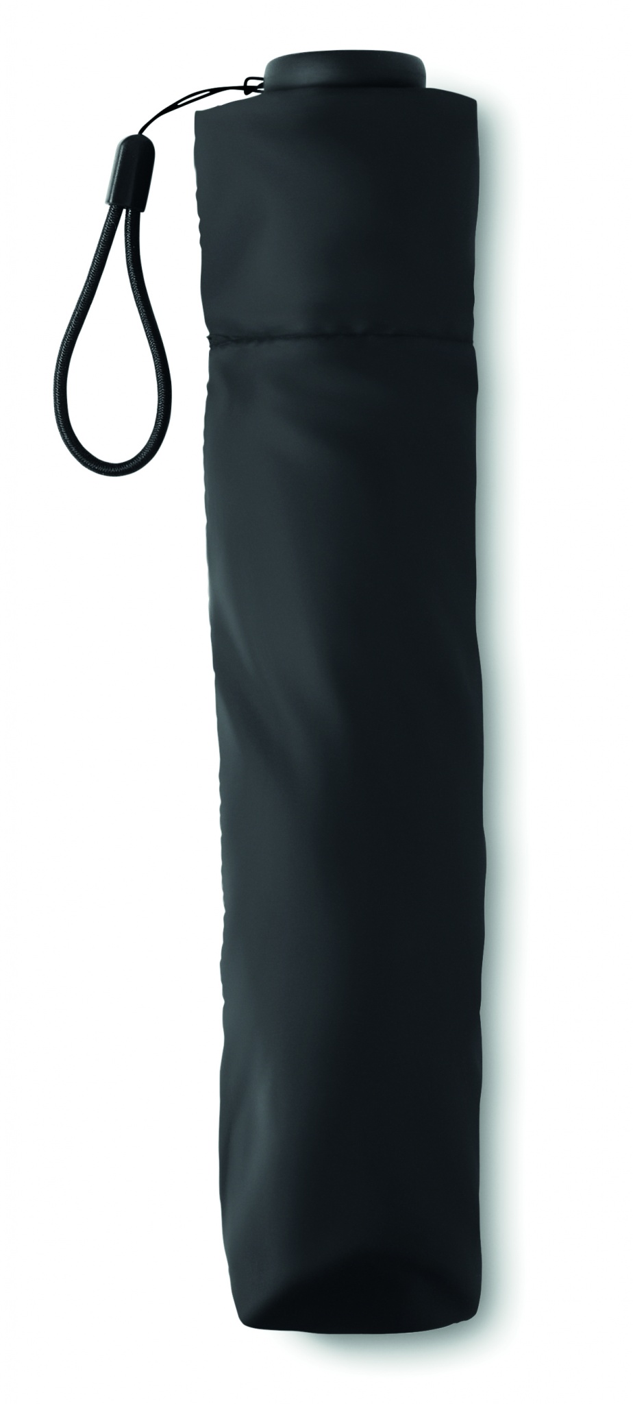 Ultrakevyt, kolmeen osaan taittuva 19 tuuman manuaalisesti avattava tuulenpitävä sateenvarjo 30D pongee polyesteristä, jossa musta hiilikuituvarsi. Mustat hiilikuituruoteet ja muoviset kärjet. Manuaalinen sulkeminen. Suojapussi. 100 gr.