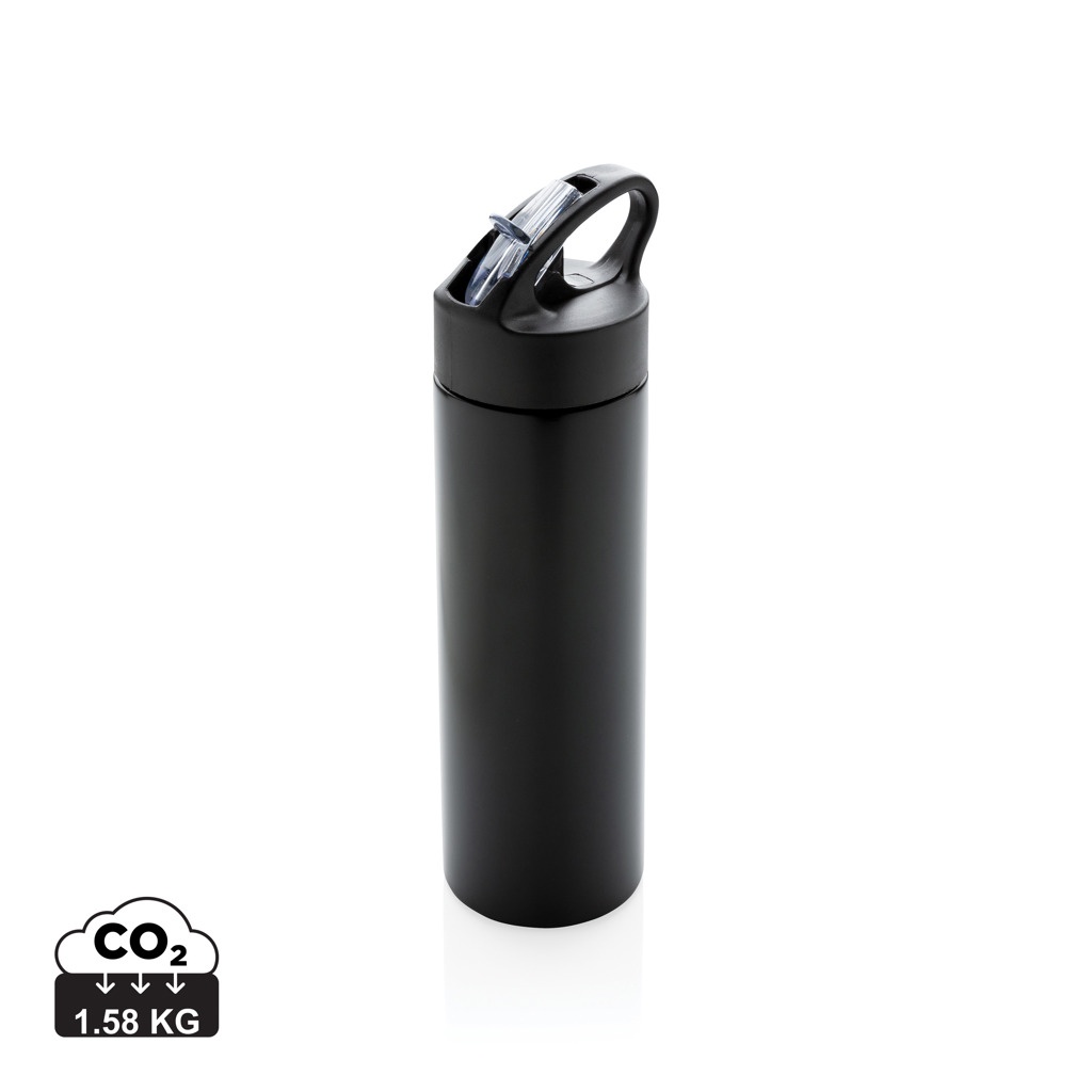 500 ml yksiseinämäinen ruostumaton teräspullo, musta mattapintainen PP-kansi, juomapilli ja juomista helpottava korkki. Rekisteröity design®