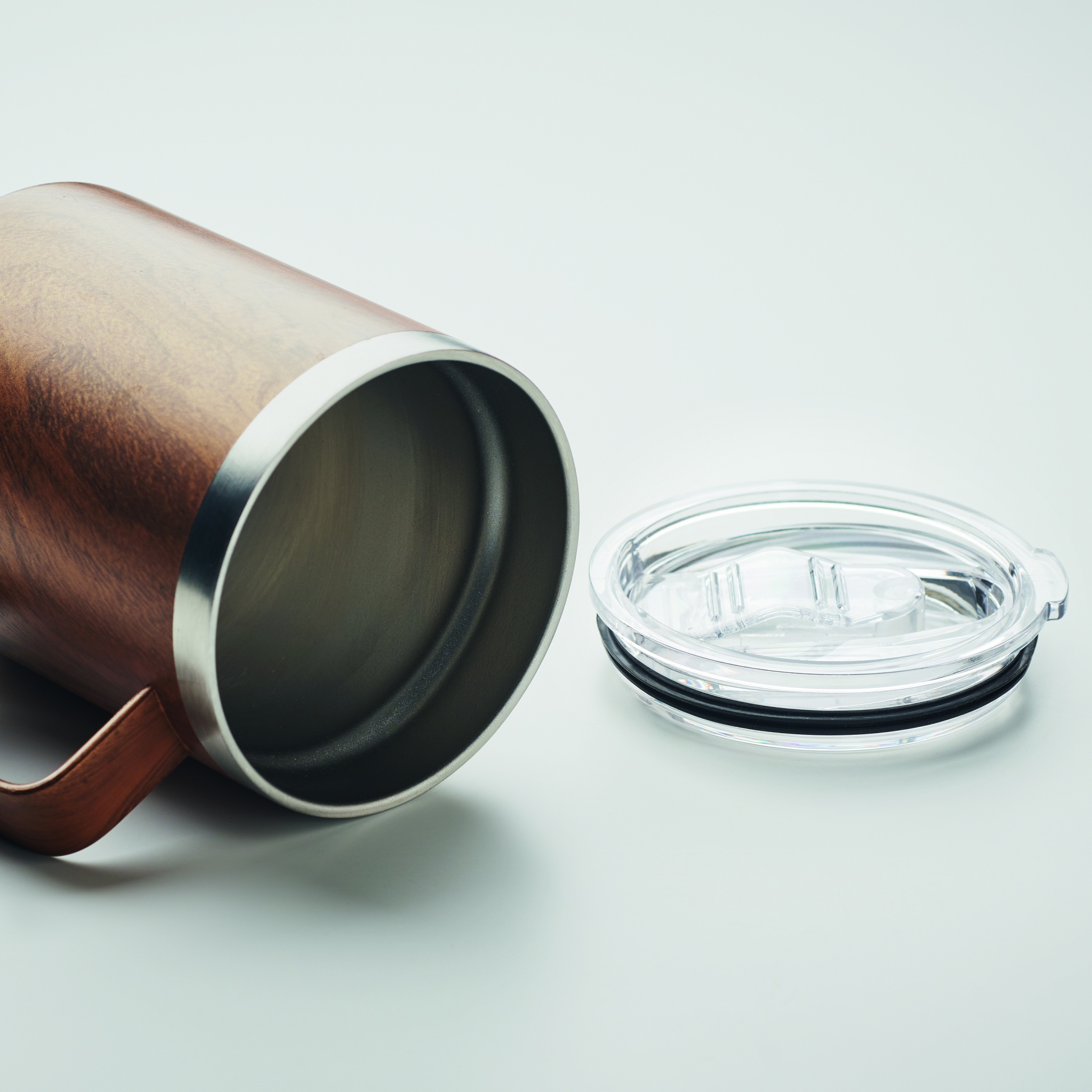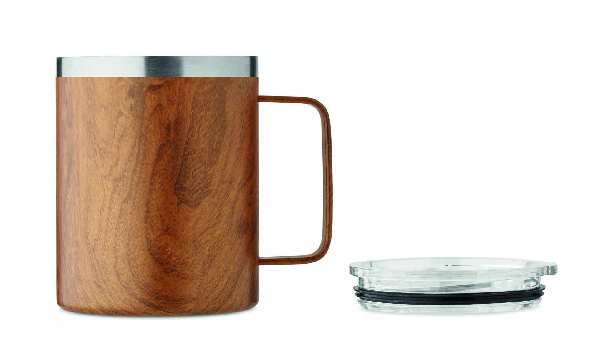 Kaksiseinäinen kierrätetystä ruostumattomasta teräksestä (90 % kierrätettyä ruostumatonta terästä ja 10 % ruostumatonta terästä) valmistettu termosmuki, jossa on puupintaa jäljittelevä pinnoite. Tilavuus: 300 ml.
