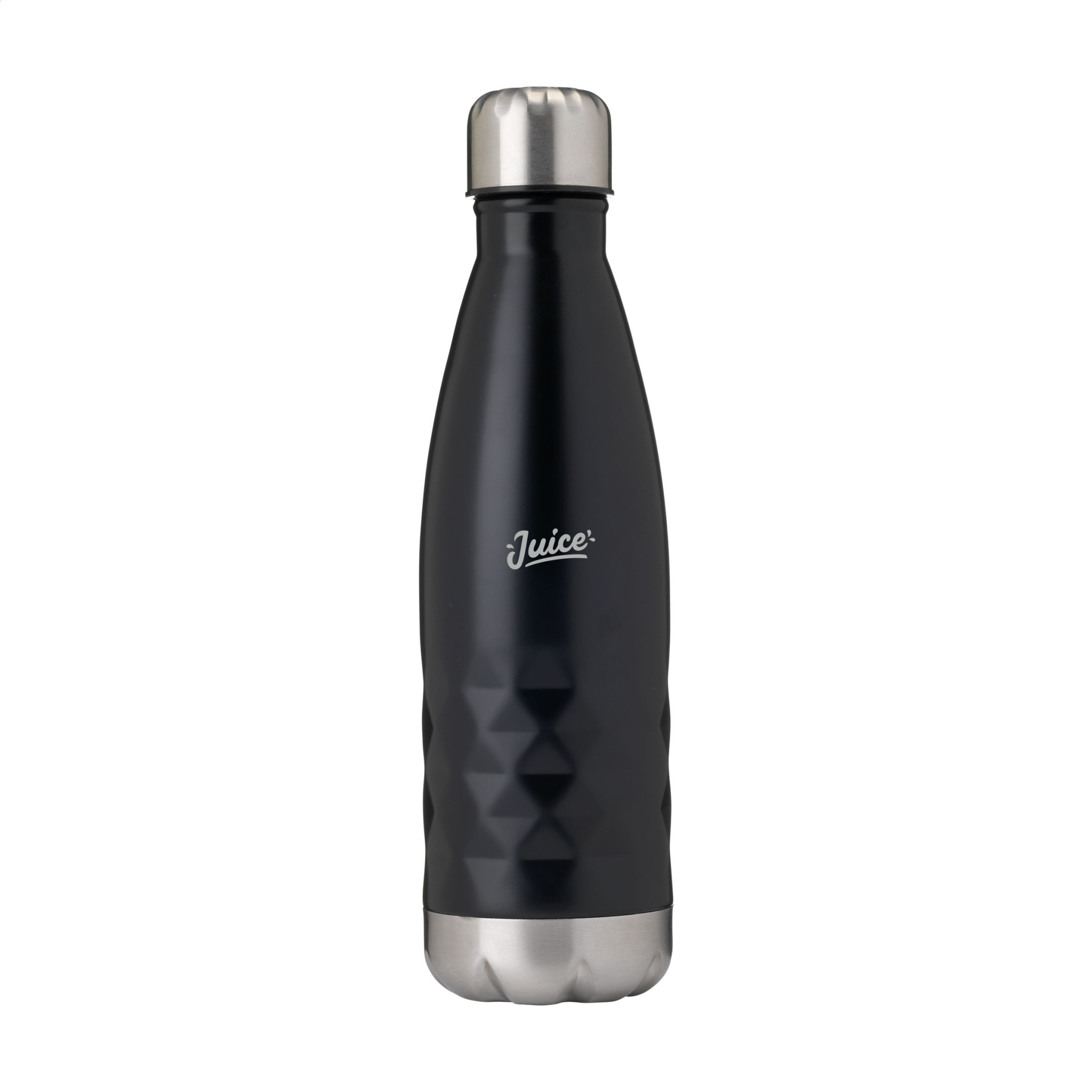 Kaksiseinäinen, vuotamaton ruostumattomasta teräksestä valmistettu vesipullo/termopullo, jossa erottuva geometrinen 3D-timanttikuvio. Soveltuu kylmän tai kuuman veden lämpötilan ylläpitämiseen. Tilavuus 500 ml. Jokainen tuote on pakattu erikseen.