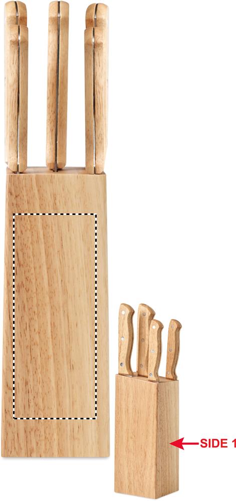 Puinen veitsisetti, sisältää 5 veistä. Isokokin-, pienikokin-, leipä-, juures- ja lihaveitsi. Luonnollisen materiaalin vuoksi, tuotteiden värissä/ koossa saattaa olla erinäisyyksiä ja tämä voi vaikuttaa painatuksen lopputulokseen.