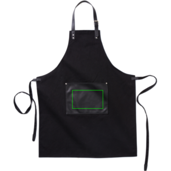 Tyylikäs perinteinen essu paksua puuvillakanvaasia, yksityiskohdat PU. Säädettävä niskalenkki ja iso etutasku. Käytössä upeasti patinoituva klassikko.