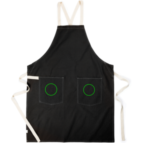 Esiliina, valmistettu 70% sertifioidusta kierrätetystä puuvillasta. Tämän tuotteen valmistusprosessissa puuvillajätteestä on oikean valmistusmenetelmän avulla onnistuttu saavuttamaan halutut ominaisuudet kuiduille, joita yleensä pidetään hyödyttöminä. Esiliina on erityisen leveä tarjoten maksimaalisen suojan. Näyttävinä yksityiskohtina kaksi suurta taskua edessä ja silmukka, johon voit ripustaa ruokailuvälineet tai keittiöpyyhkeen.