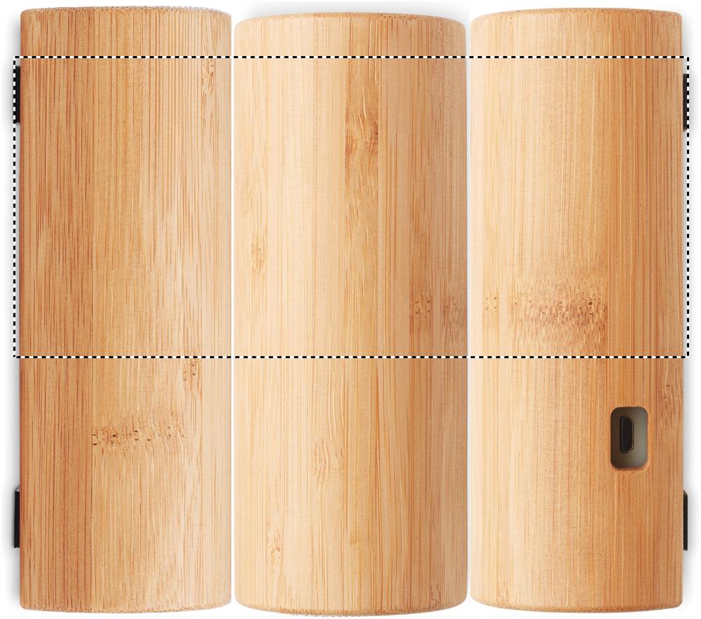 5.0 belaidis stereofoninis garsiakalbis iš ABS su bambuko korpusu. Komplekte yra įkraunama ličio jonų 2000 mAh baterija. Išėjimo duomenys: 4 Ohm, 5Wx2. Žaidimo laikas apytiksl. 4 val., krovimo laikas 3 val. Bambukas yra natūralus produktas, gali šiek tiek skirtis kiekvieno gaminio spalva ir dydis, o tai gali turėti įtakos galutiniam dekoravimo rezultatui.