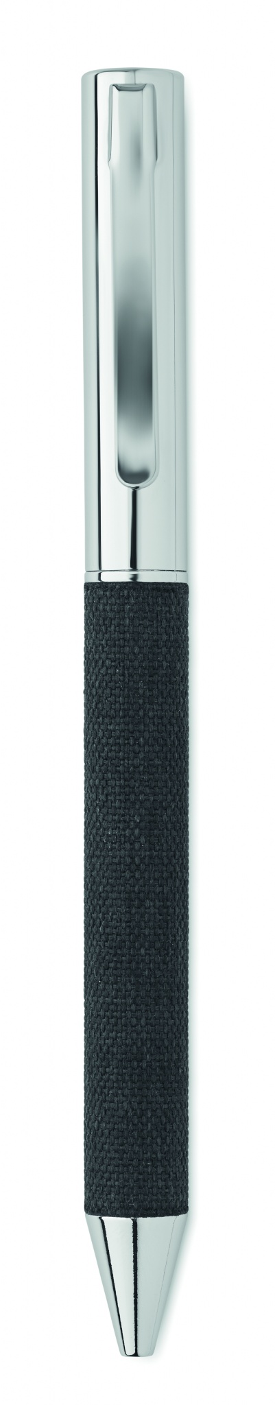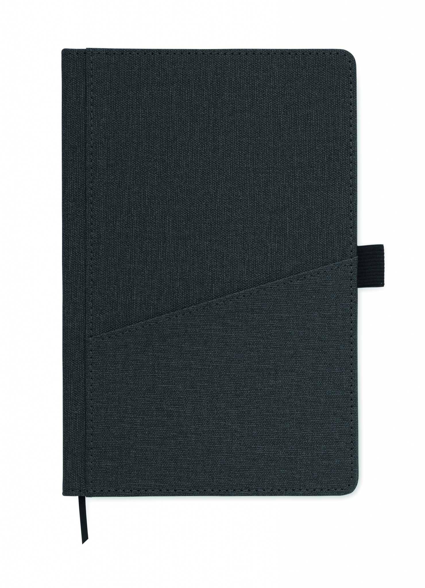 Подарочный набор из 3 предметов. В набор входят металлическая шариковая ручка со вставками из переработанного полиэстера, блокнот в твердой обложке RPET с передним карманом для смартфона и брелок для ключей из полиэстера RPET. Синие чернила.