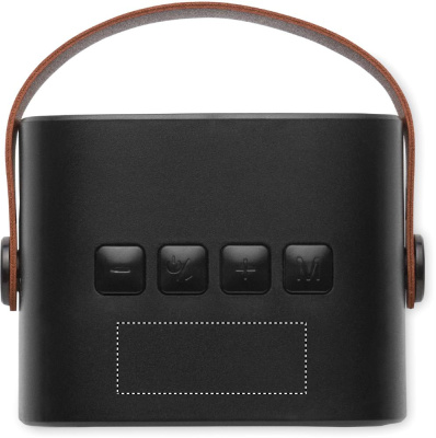 5.0 wireless speaker in recycled ABS with PU handle. 1 Rechargeable Li-ION 500 mAh battery included. Includes an SD card port and an AUX/ USB cable. Output data: 5W, 3 Ohm and 5V. Playing time approx. 4h.