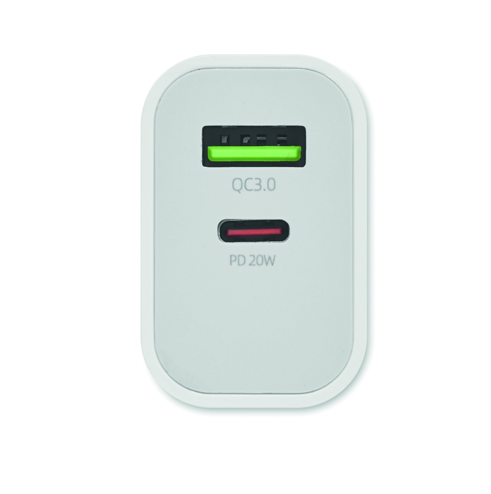 Двойное зарядное устройство с адаптером (ЕС). Поддерживает технологию быстрой зарядки (18 Вт, 3.0)