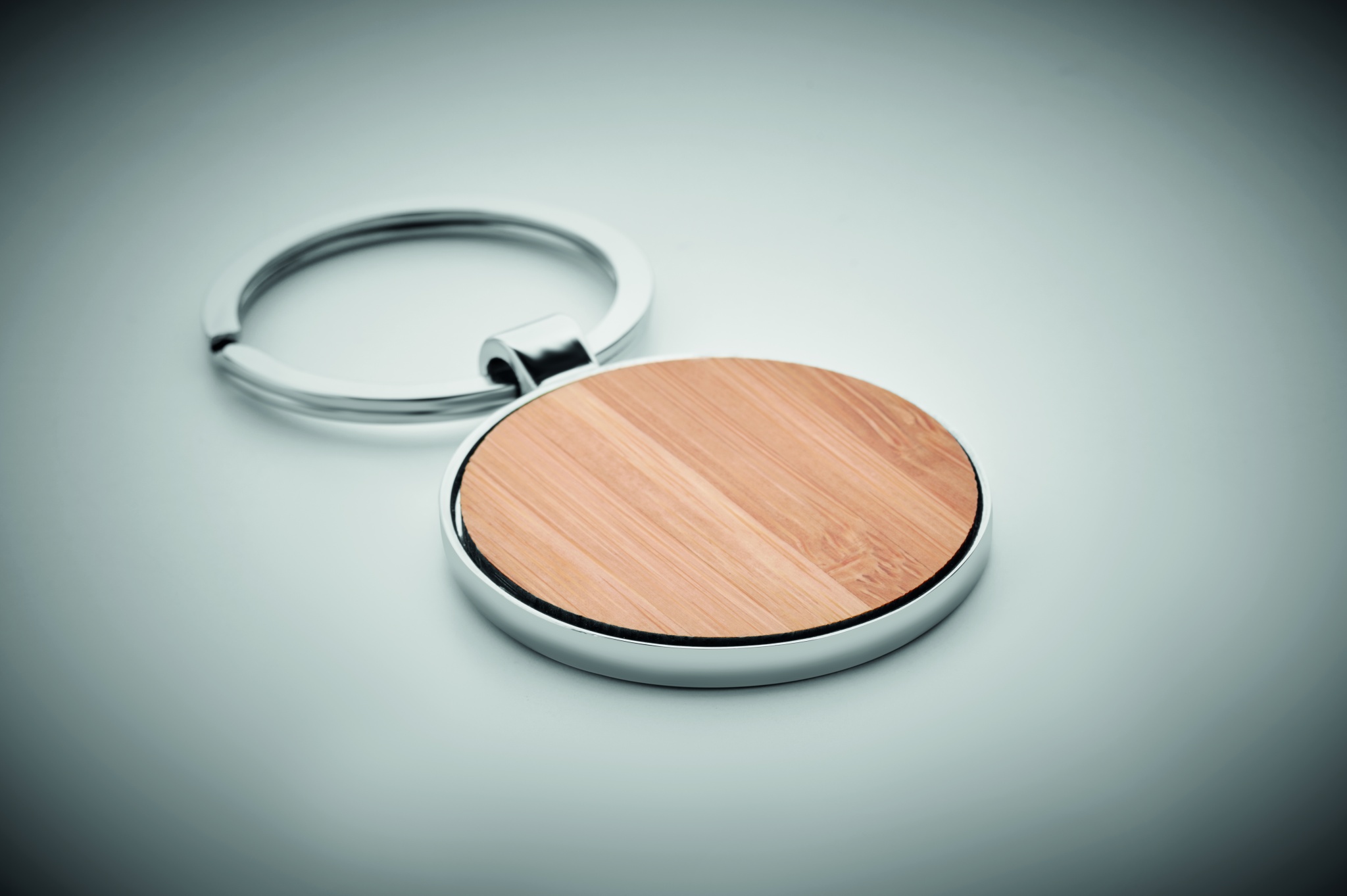 Брелок круглый из цинкового сплава с бамбуком. Бамбук является натуральным продуктом, могут быть небольшие различия в цвете