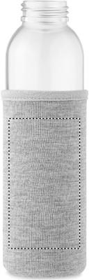 Бутылка из переработанного стекла с неопреновым чехлом и полипропиленовой крышкой с силиконовым держателем. Герметична. Емкость: 500 мл.